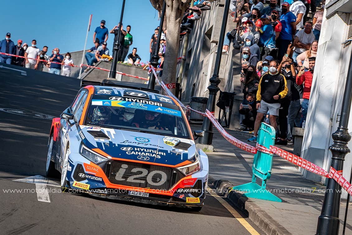 Y cerrando la lista de los diez primeros clasificados, Yeray Lemes y Rogelio Peñate sufrían muchísimo al no conseguir el ritmo necesario para estar más arriba en la clasificación, aunque el nuevo Hyundai i20 Rally2 se mostró mejor de lo esperado.