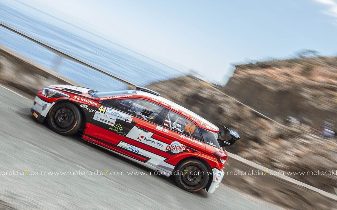 Aquí saltana la sorpresa con el piloto gallego Iván Ares, que acompañado a la derecha de de José Pintor exprimía al máximo su i20 R5 y marca el mejor registro del día tras cuatro pasadas al tramo.