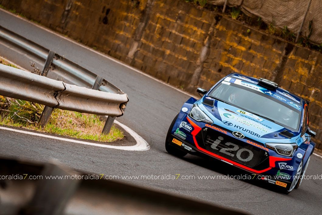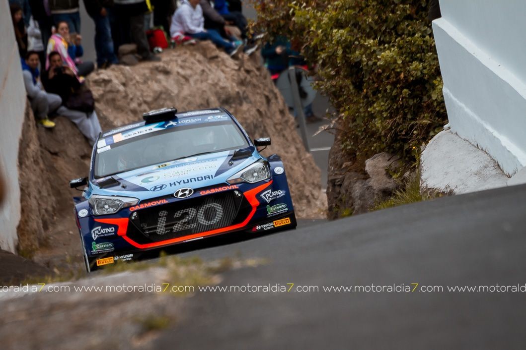 Ya en la sexta plaza, Pernía y Peñate sufrían muchísimo con la electrónica de su Hyundai i20 R5, que al final le permitía terminar por delante de un espléndido Toñi Ponce y Rubén González con el coche de Hyundai Canarias.