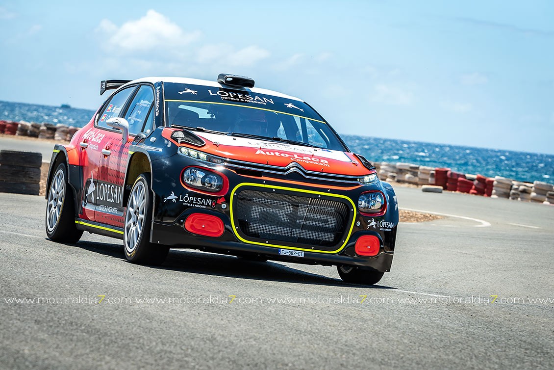 El piloto de Santa Brígida Luis Monzón pudo probar por primera vez su nuevo Citroën C3 R5 en el Circuito de Maspalomas. Un vehículo con “0” kilómetros que va a poner a su gusto con la ayuda de Enrique García Ojeda, piloto español que fue ganador del IRC hace unos años y que ahora tiene una empresa encargada de mantener vehículos de competición.