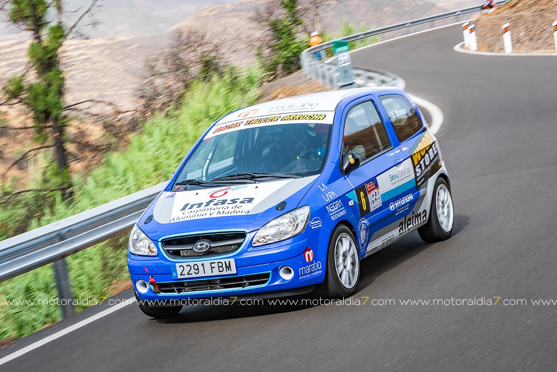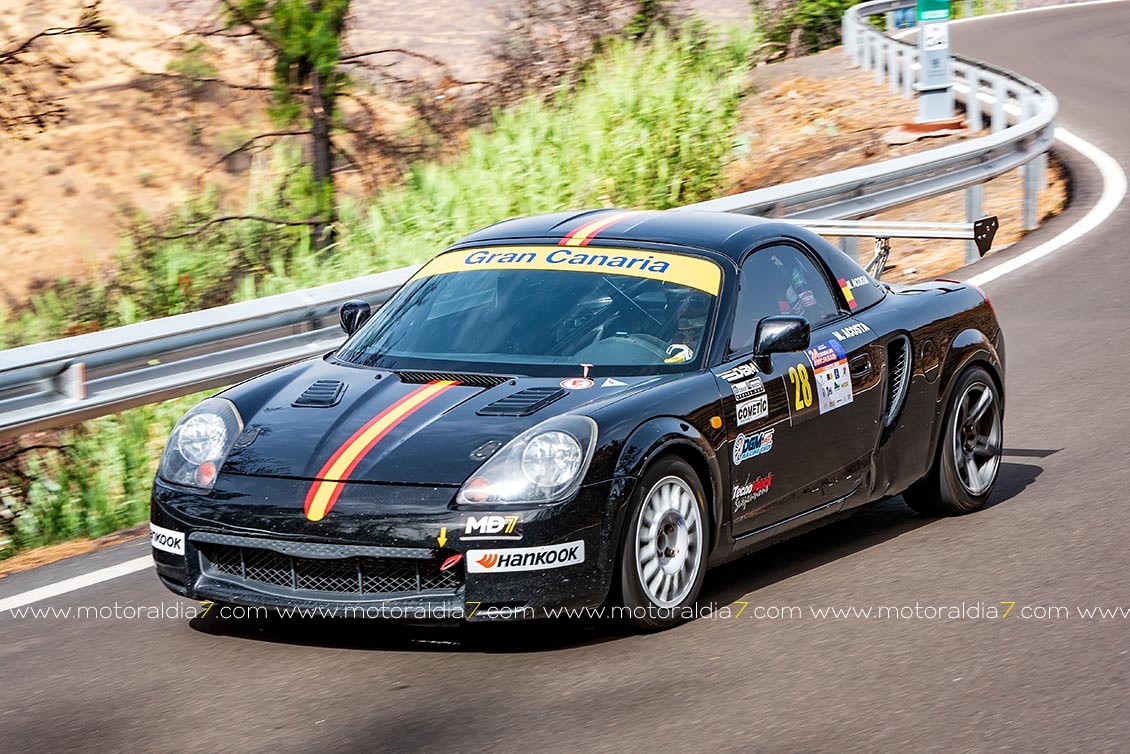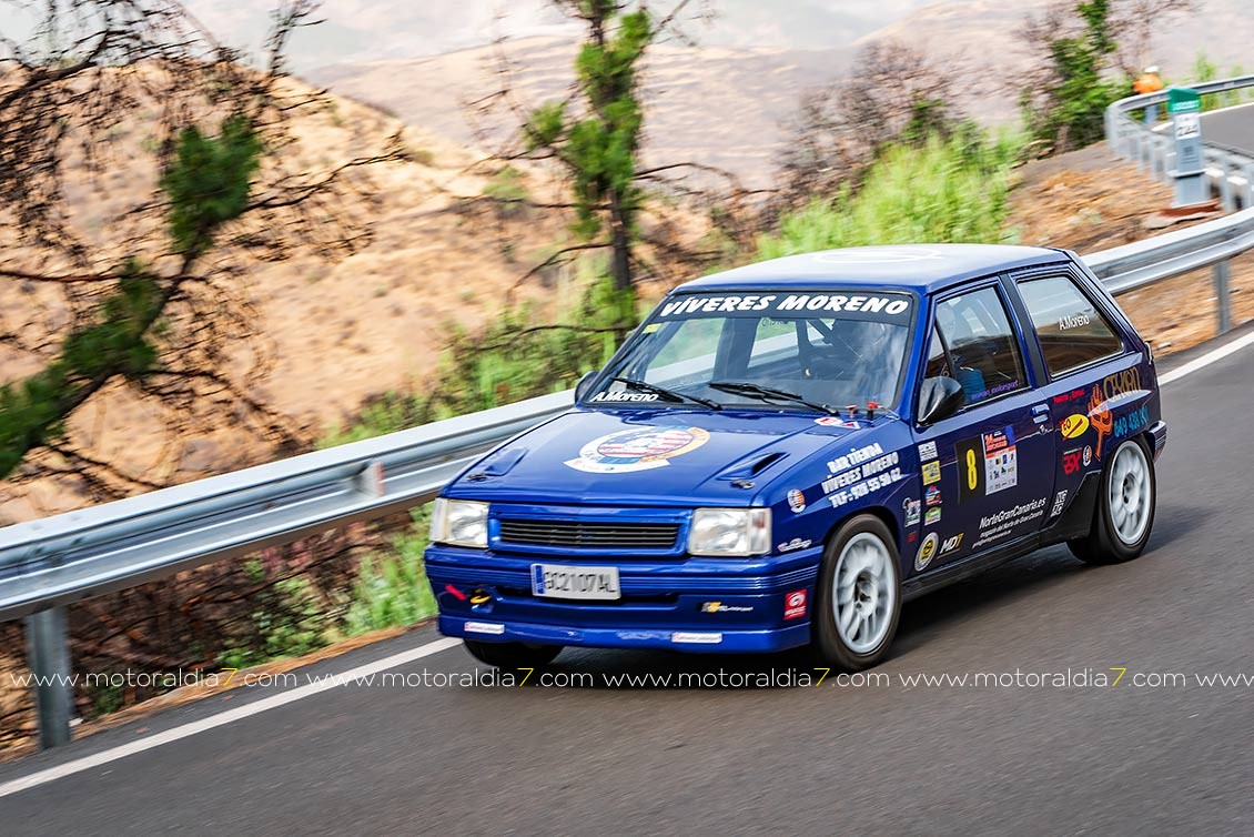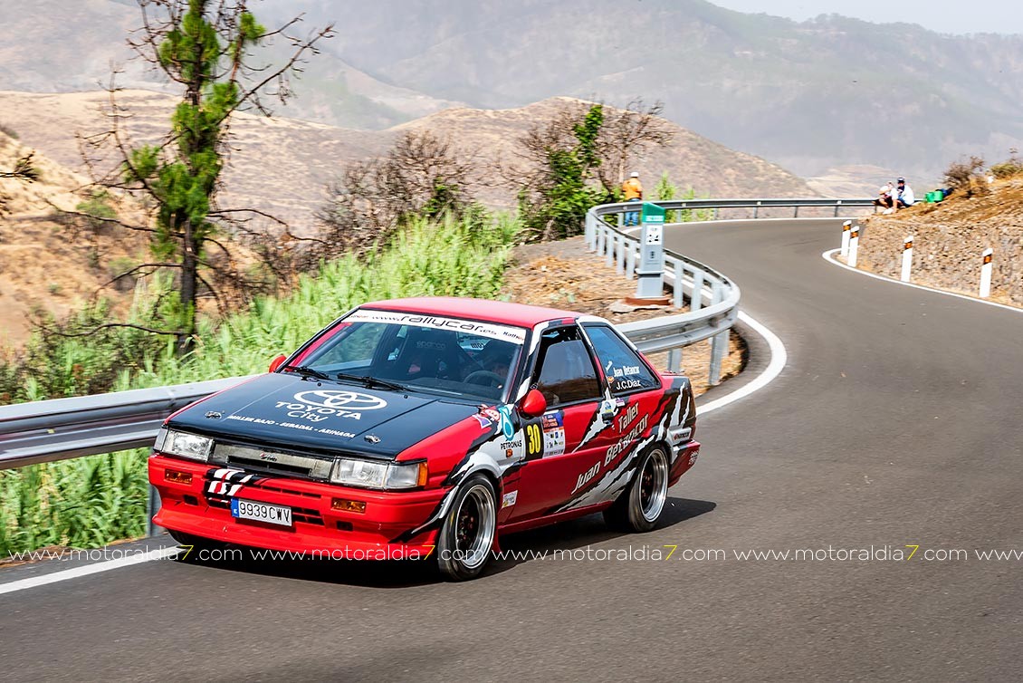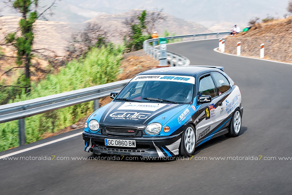 El piloto teldense Juanillo Betancor le sacaba la quintaesencia a su Toyota Corolla Twin Cam y marcaba un excelente octavo tiempo de la general, justo por delante de Jonai Rodríguez con un Honda Civic muy bien puesto a punto.