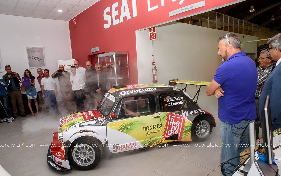 Impresionante acogida de los aficionados a la convocatoria, en las instalaciones de Orvecame SEAT en el Sebadal, de José Maria Ponce y Carlos Larrodé, que presentaba su vehículo con el que participarán en el 41º Rally Islas Canarias, un sorprendente y espectacular SEAT JTR 600, recientemente homologado para competir en Rallys. Básicamente se trata de un chasis de 600, con partes tubilares delante y detrás, con un motor de moto (Suzuki Hayabusa) de 1.300 cc. con cerca de 200 CV de potencia.