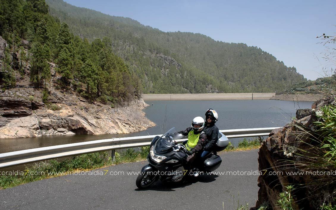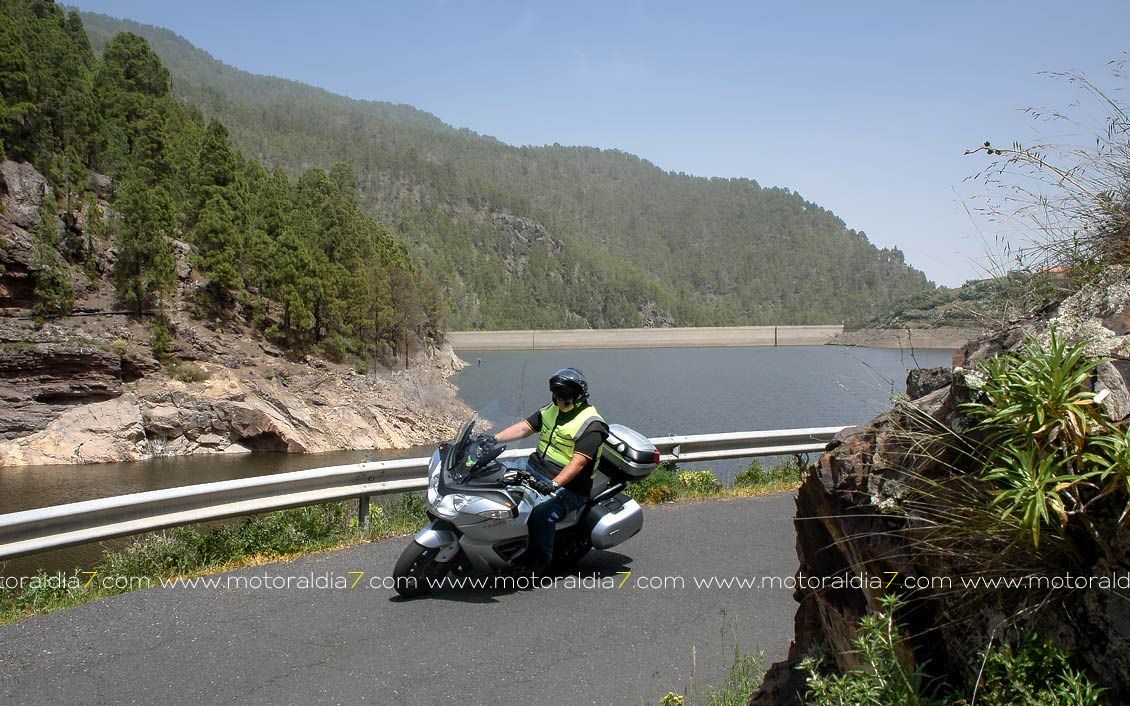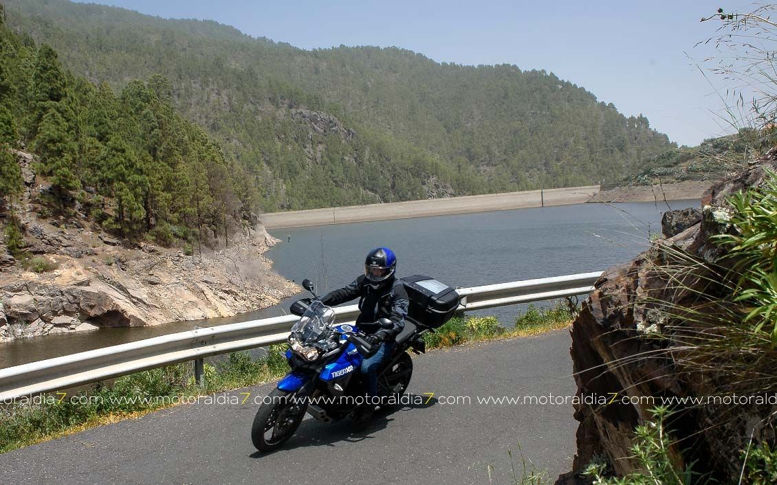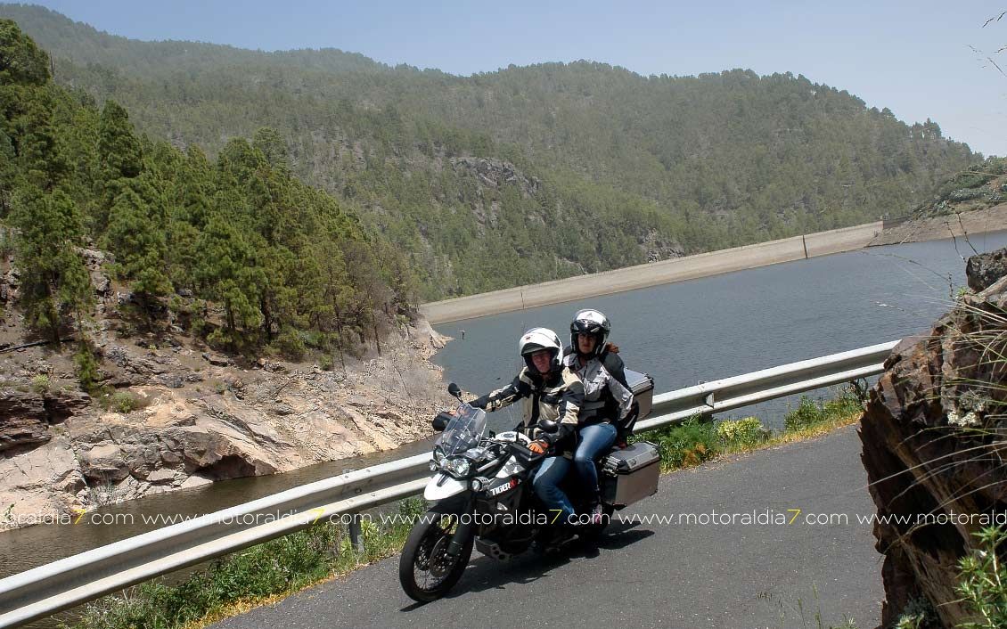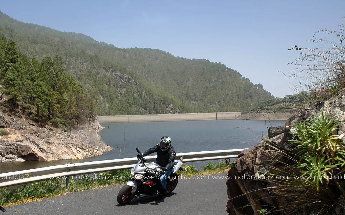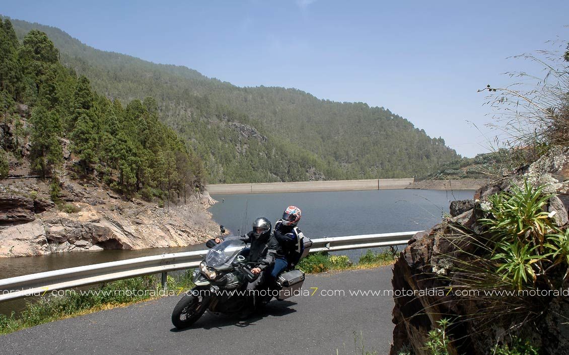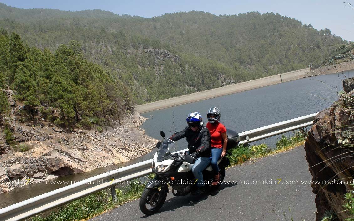 La salida comenzaba con las 40 motos reunidas a las 10:30 de la mañana, para tomar rumbo hacia Santa Brígida por la carretera del centro y tomar el desvío hacia Pino Santo. Todos los participantes asistidos por la organización que se apostaba estratégicamente en los cruces más conflictivos. Siguiendo con la ruta hasta Valleseco, para subir hasta los Pinos de Galdar y de nuevo descender hacia Fontanales. Desde Fontanales nos dirijamos a la Presa de los Pérez, pasando por Montaña Alta, donde se realizó una parada de avituallamiento sobre todo de líquidos, igual que se había realizado en el Balcón de Zamora.