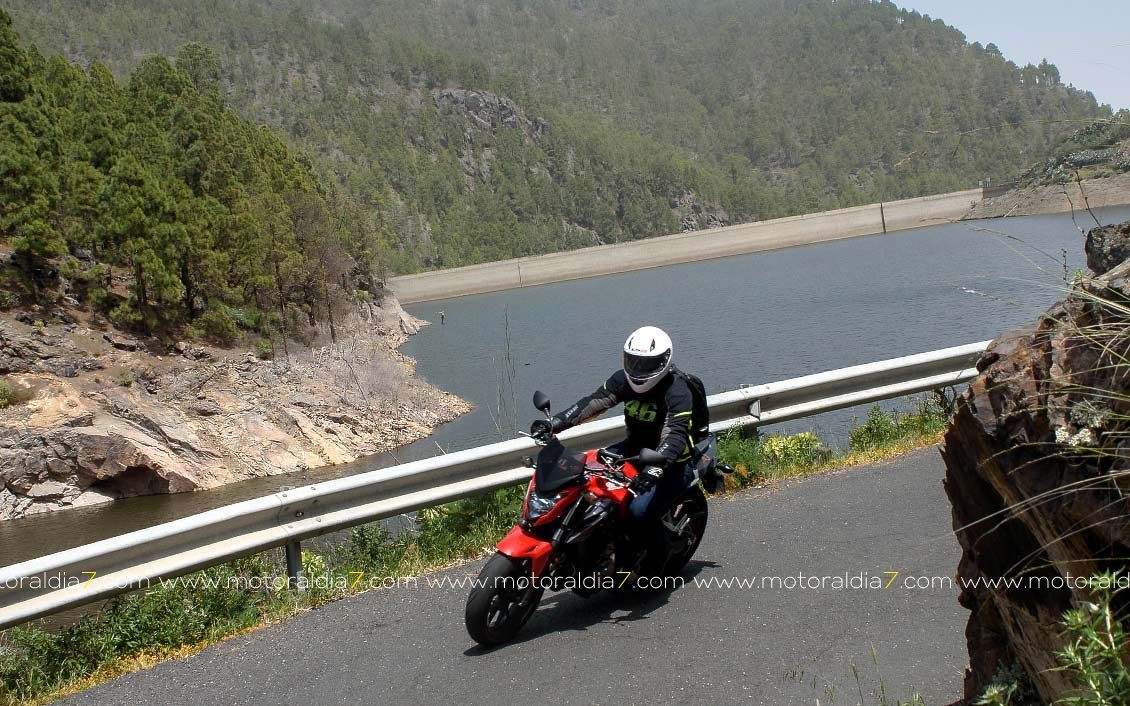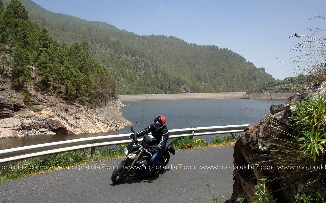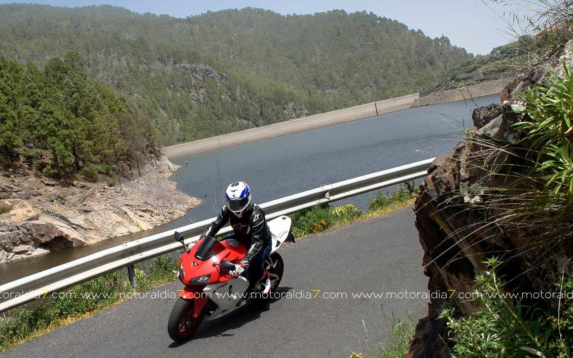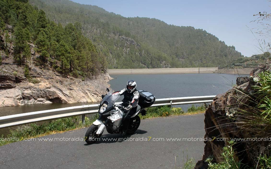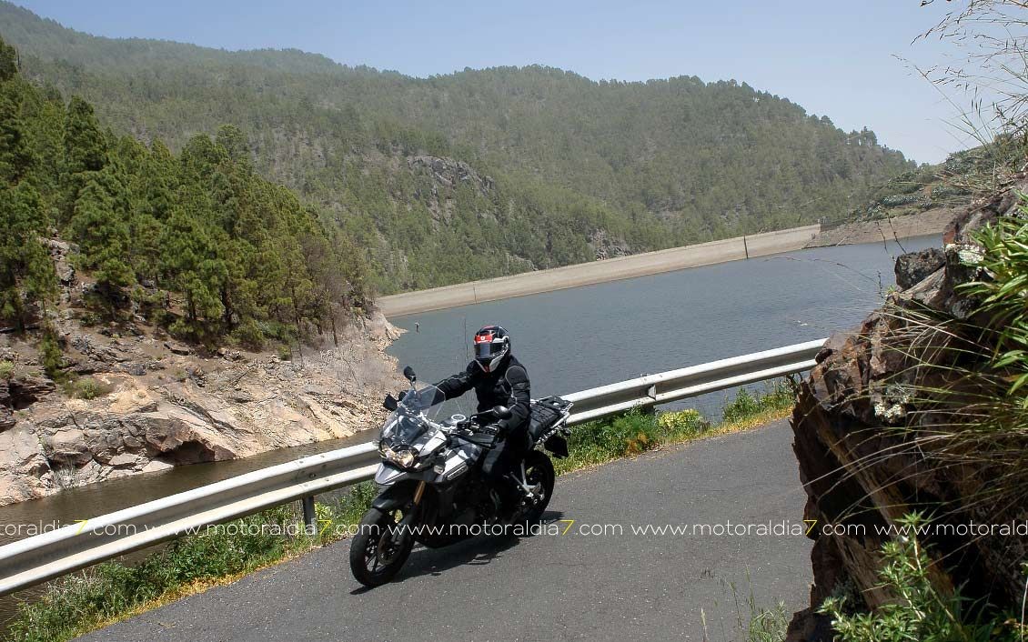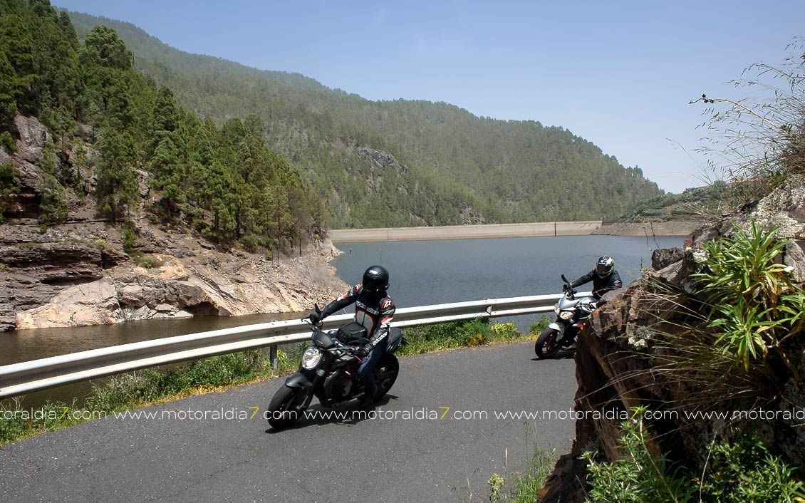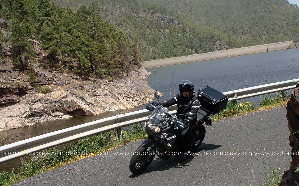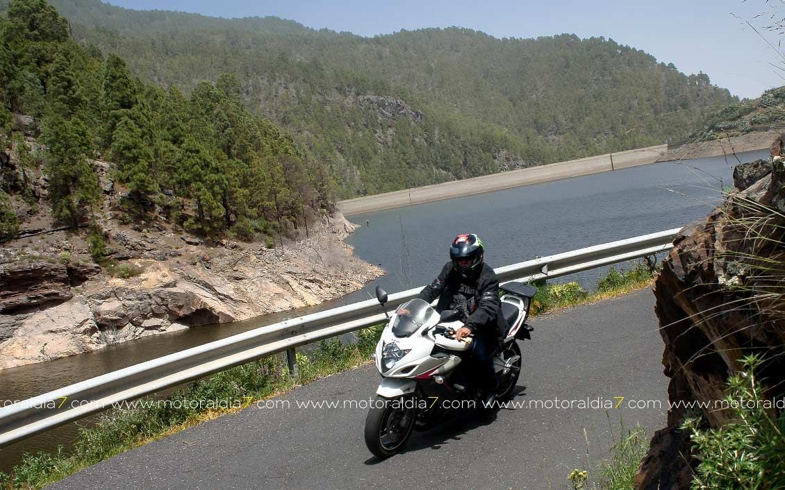 La salida comenzaba con las 40 motos reunidas a las 10:30 de la mañana, para tomar rumbo hacia Santa Brígida por la carretera del centro y tomar el desvío hacia Pino Santo. Todos los participantes asistidos por la organización que se apostaba estratégicamente en los cruces más conflictivos. Siguiendo con la ruta hasta Valleseco, para subir hasta los Pinos de Galdar y de nuevo descender hacia Fontanales. Desde Fontanales nos dirijamos a la Presa de los Pérez, pasando por Montaña Alta, donde se realizó una parada de avituallamiento sobre todo de líquidos, igual que se había realizado en el Balcón de Zamora.