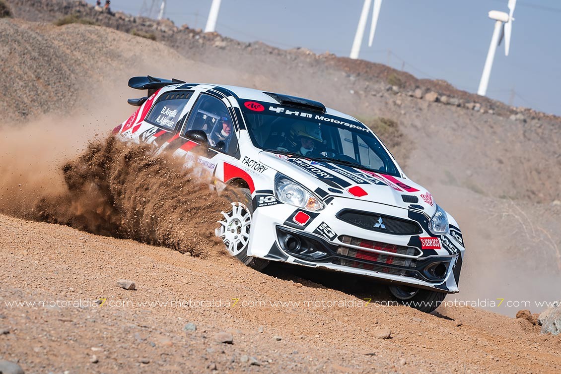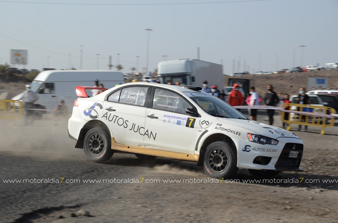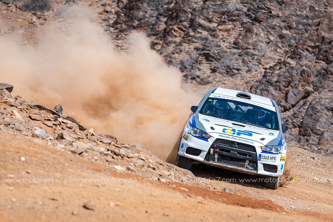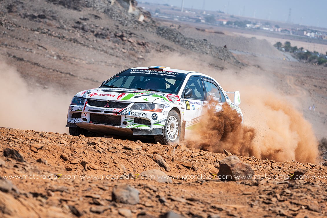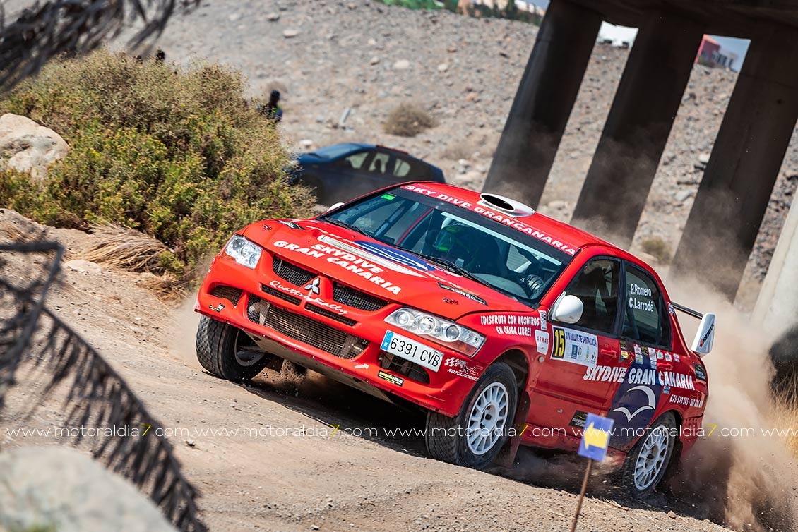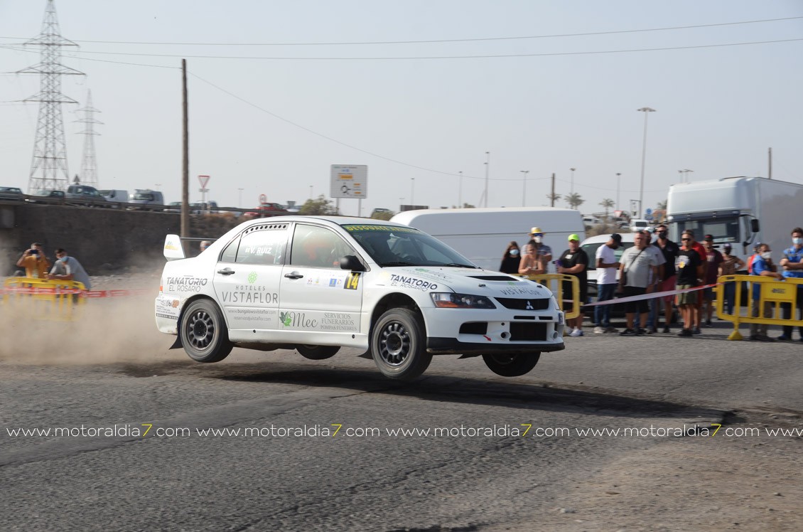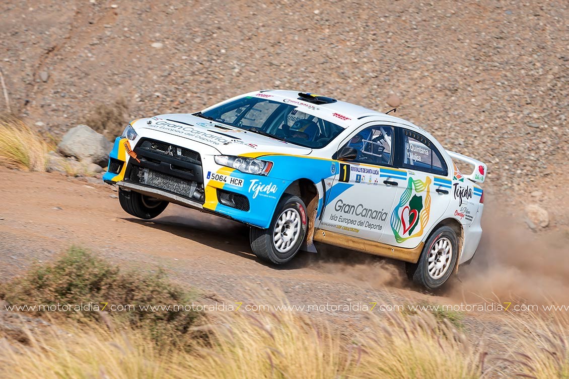 Los primeros líderes del rally fueron Juan Carlos Quintana-Yeray Mujica, que desde el primer tramo imprimieron un ritmo alto, aunque ya el piloto se quejaba de unos extraños en el motor de su Mitsubishi Lancer Evo X. Un problema que fue en aumento y debían retirarse antes de la salida del TC4, tramo donde tomaban el liderato Jesús Tacoronte-Mariola Sáez con su Evo IX, que gracias a su scratch en dicha especial de Juan Grande-Bahía Feliz, pasaban del tercer al primer puesto en la general en ese momento con 7,8 segundos de ventaja sobre Gustavo Sosa-Ariday Bonilla, que venían conservando ganas de correr para preservar la mecánica de su Skoda Fabia R5, mientras Borja Pérez-Jonathan Hernández tomaban el tercer lugar del podio con otro Evo X, pero ya a 42 segundos del nuevo líder.