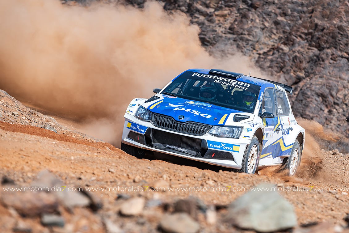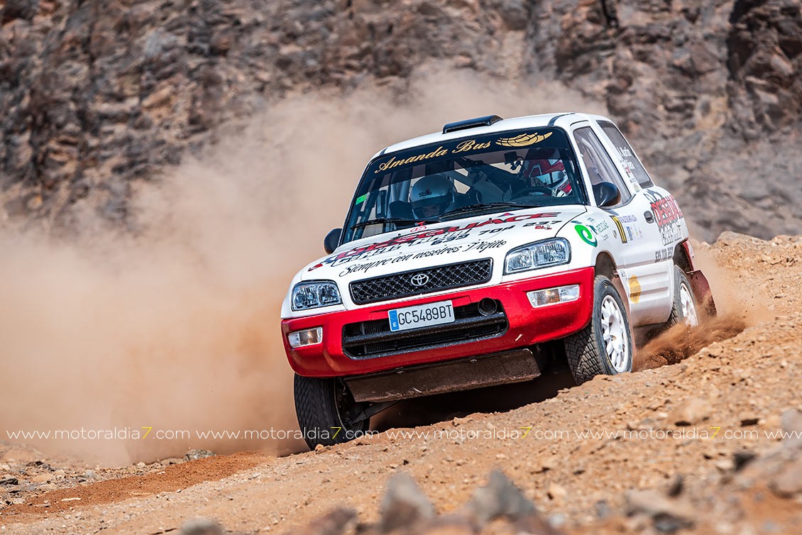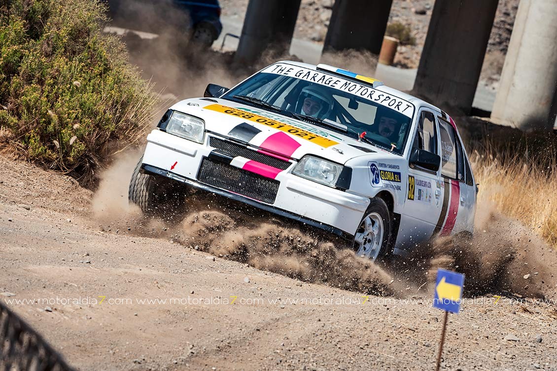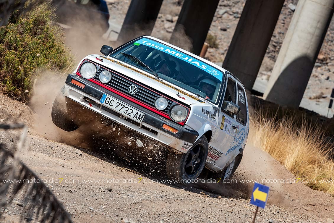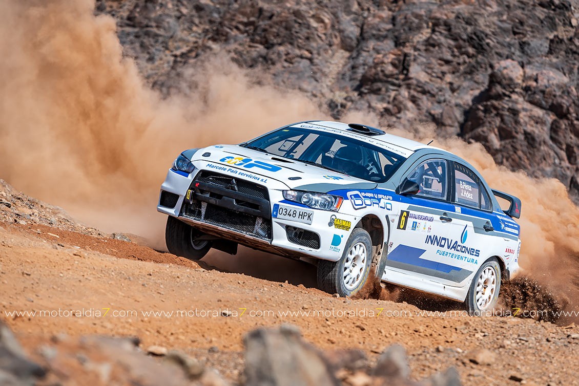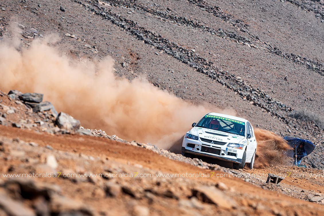 Los primeros líderes del rally fueron Juan Carlos Quintana-Yeray Mujica, que desde el primer tramo imprimieron un ritmo alto, aunque ya el piloto se quejaba de unos extraños en el motor de su Mitsubishi Lancer Evo X. Un problema que fue en aumento y debían retirarse antes de la salida del TC4, tramo donde tomaban el liderato Jesús Tacoronte-Mariola Sáez con su Evo IX, que gracias a su scratch en dicha especial de Juan Grande-Bahía Feliz, pasaban del tercer al primer puesto en la general en ese momento con 7,8 segundos de ventaja sobre Gustavo Sosa-Ariday Bonilla, que venían conservando ganas de correr para preservar la mecánica de su Skoda Fabia R5, mientras Borja Pérez-Jonathan Hernández tomaban el tercer lugar del podio con otro Evo X, pero ya a 42 segundos del nuevo líder.