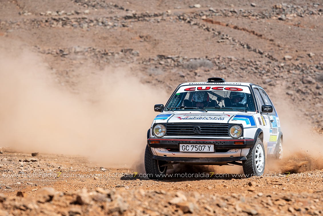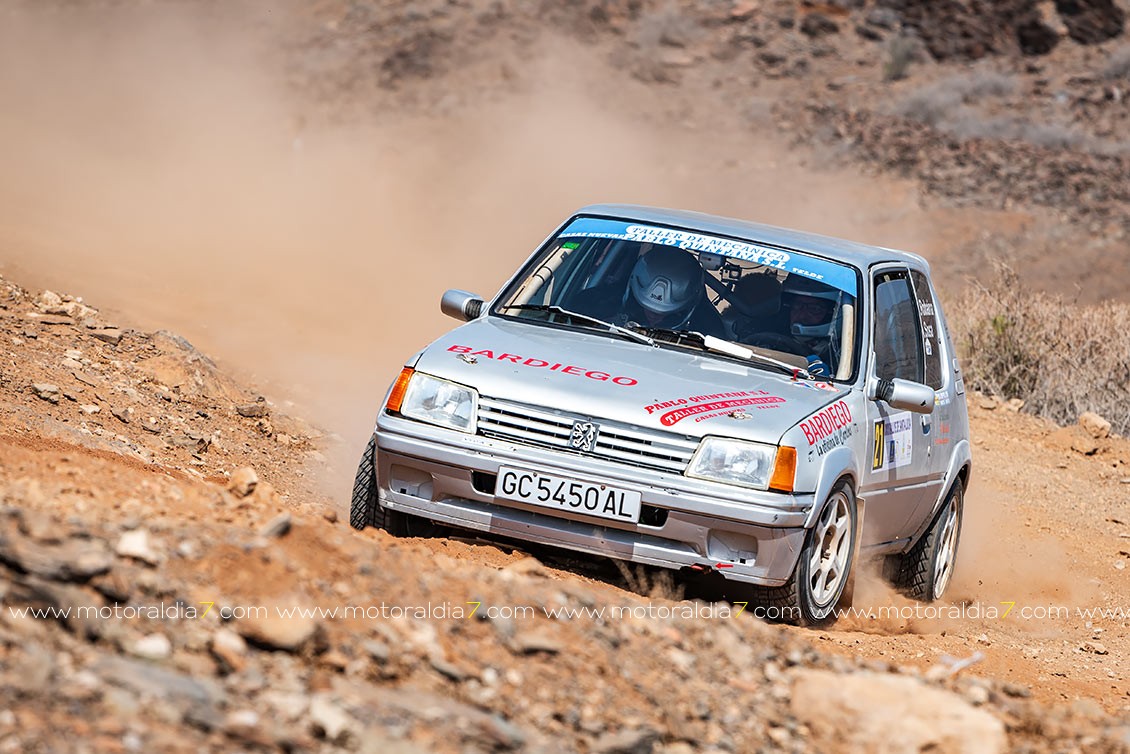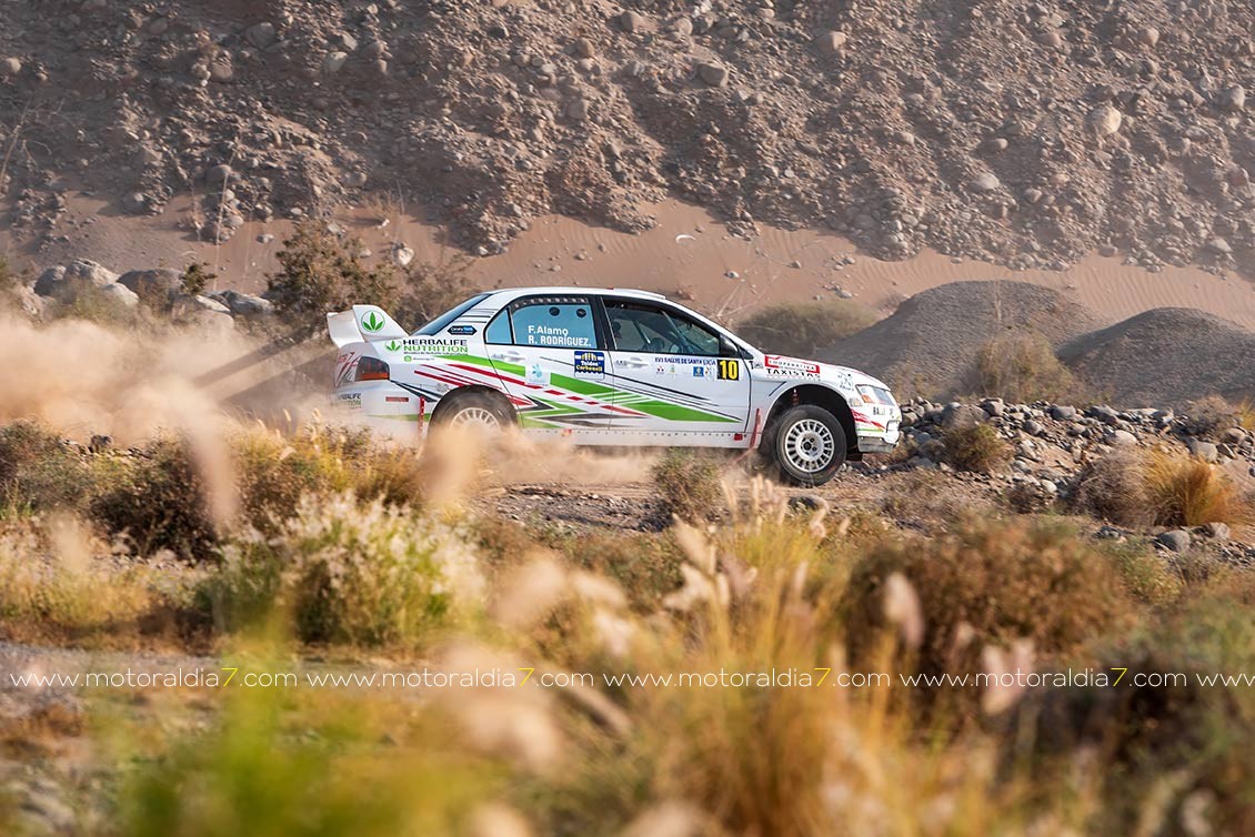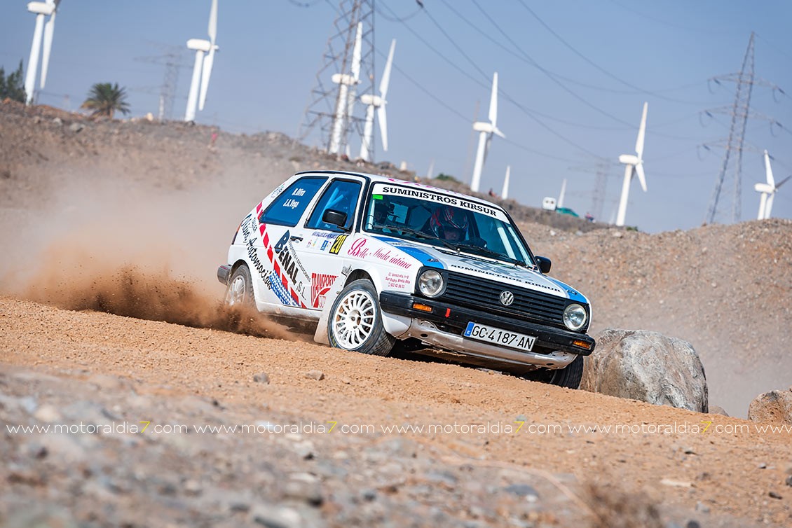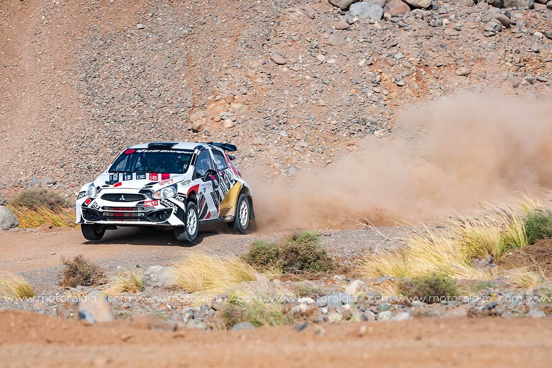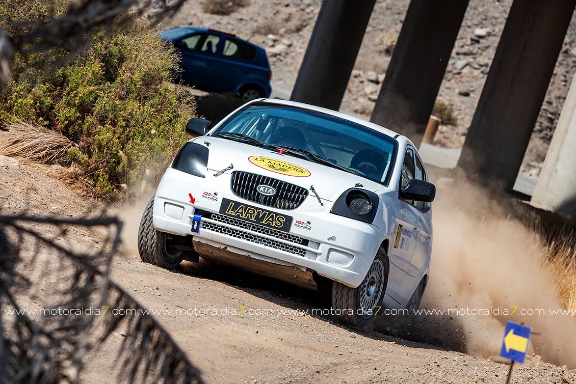 Los primeros líderes del rally fueron Juan Carlos Quintana-Yeray Mujica, que desde el primer tramo imprimieron un ritmo alto, aunque ya el piloto se quejaba de unos extraños en el motor de su Mitsubishi Lancer Evo X. Un problema que fue en aumento y debían retirarse antes de la salida del TC4, tramo donde tomaban el liderato Jesús Tacoronte-Mariola Sáez con su Evo IX, que gracias a su scratch en dicha especial de Juan Grande-Bahía Feliz, pasaban del tercer al primer puesto en la general en ese momento con 7,8 segundos de ventaja sobre Gustavo Sosa-Ariday Bonilla, que venían conservando ganas de correr para preservar la mecánica de su Skoda Fabia R5, mientras Borja Pérez-Jonathan Hernández tomaban el tercer lugar del podio con otro Evo X, pero ya a 42 segundos del nuevo líder.