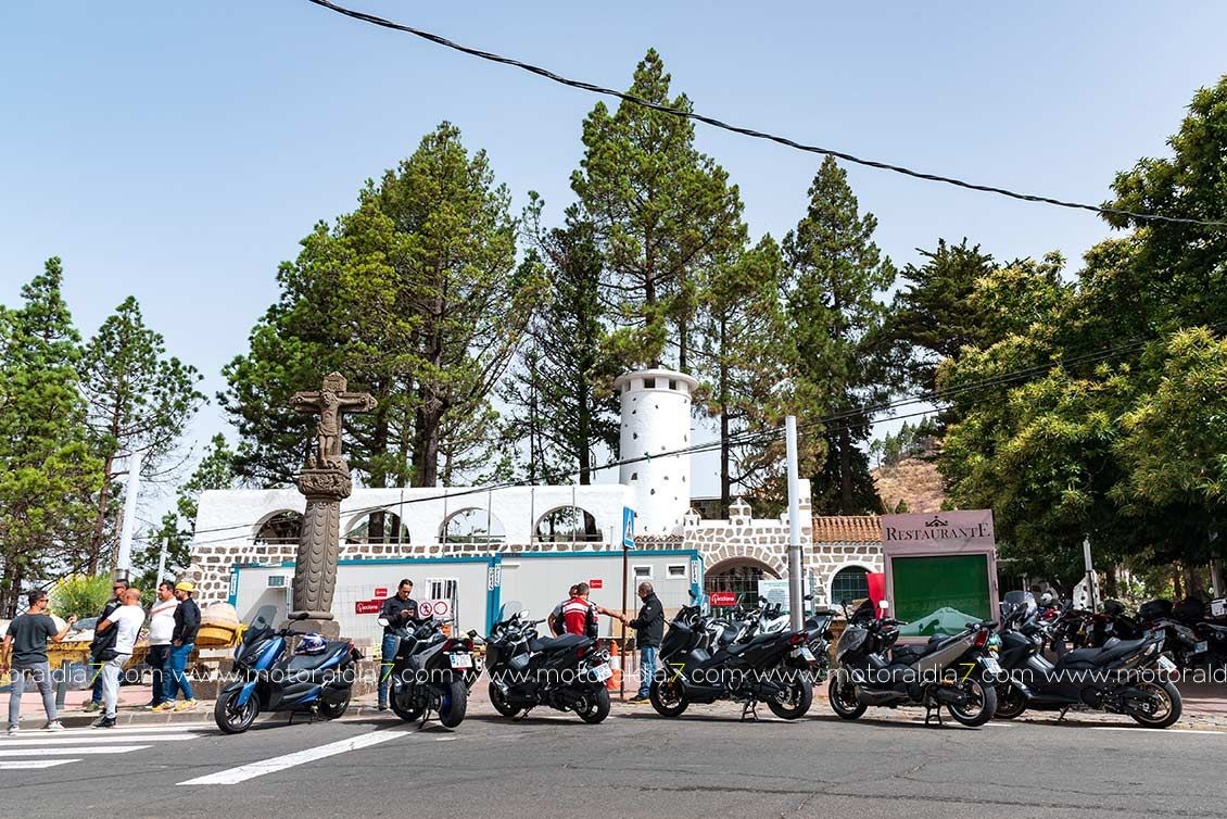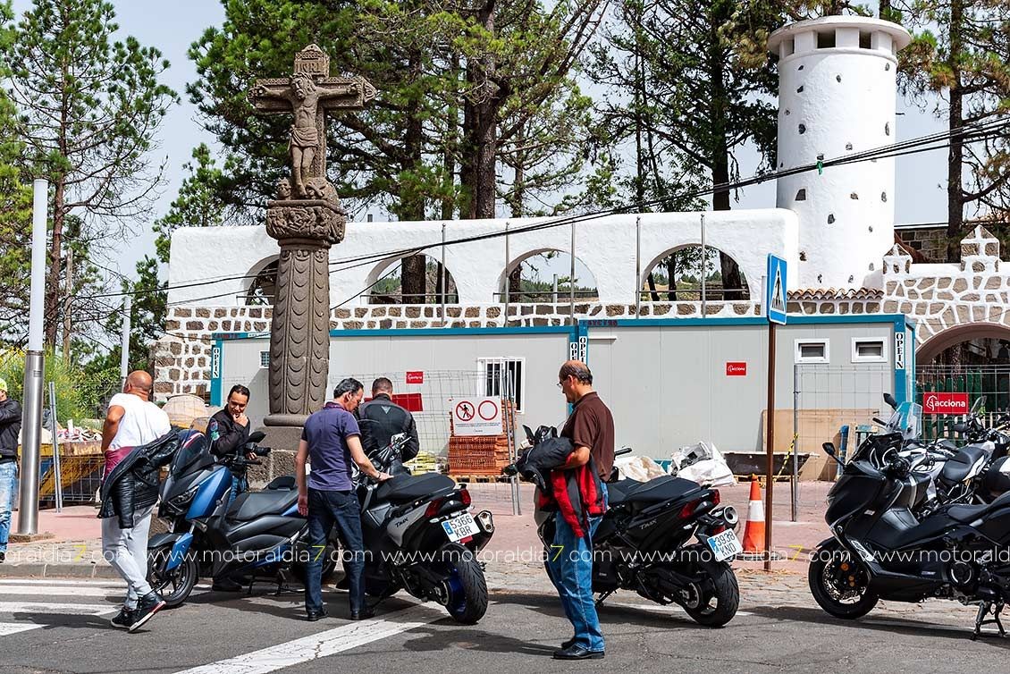 El recorrido de la ruta comenzaba con destino a Arucas, para subir por los Castillos, Los Chorros, Zumacal, Teror, Madre el agua, Ariñez y Cruz de Tejeda, donde se haría la primera parada para reponer y evacuar líquidos. Como es norma habitual en este punto se daban cita infinidad de moteros de todas las marcas, y los saludos entre todos es algo habitual e ineludible. Otra de las ventajas de conducir una moto....la cantidad de “amigos” que puedes hacer.