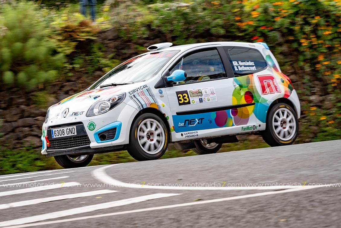 Muy buena carrera también de Manuel Hernández y David Bethencourt, que en su segunda competición con el Renault Twingo R2, conseguían la undécima plaza de la general y primeros en su grupo.