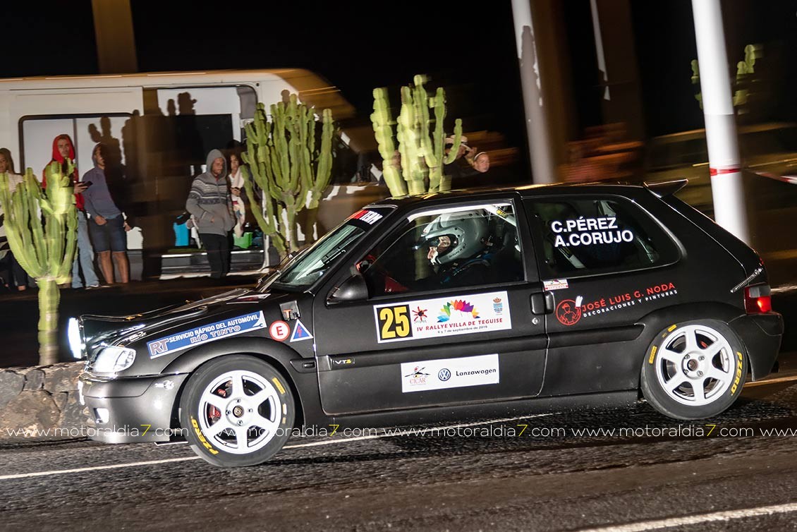 Ya con la noche sobre el cielo del norte dela isla de Lanzarote se disputaron los dos primeros tramos cronometrados del rutómetro compuesto por un total de ocho especiales. Esta primera parte del rallye tuvo de protagonista el tramo de Teseguite-Guatiza-El Mojón, con dos pasadas que han puesto de líder destacado al Porsche de Toñín Suárez y Jorge Cedrés, autor del scratch en el TC2. En la general, ya suman 16 segundos de ventaja sobre los segundos clasificados provisionales, Suso Lemes-Ayose Barrera con SEAT Ibiza y 1,1 segundos más sobre el Renault Megane de Adrián Betancort-Jorge Umpiérrez, terceros en el teórico podio después de la sección nocturna de la prueba. Este último equipo se adjudicó el triunfo de la última edición del “Villa de Teguise”, después de que fuera penalizado Toñín Suárez por unas irregularidades en su montura, por lo que sin duda este año quiere quitarse la “espinita” y volver a ser el más rápido.