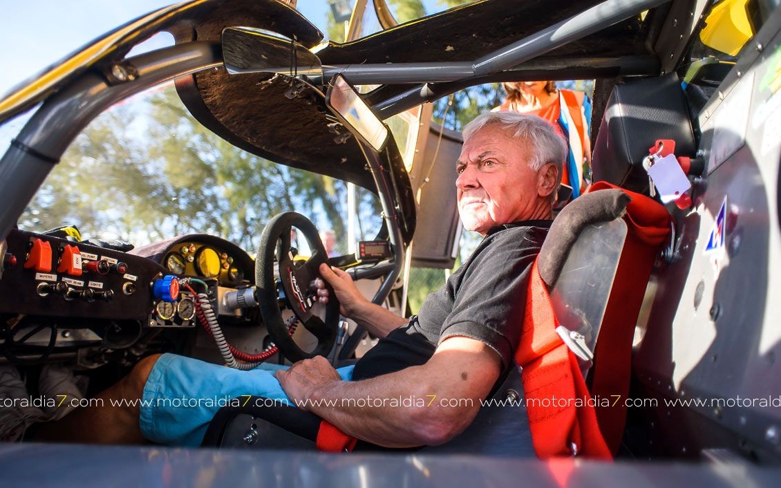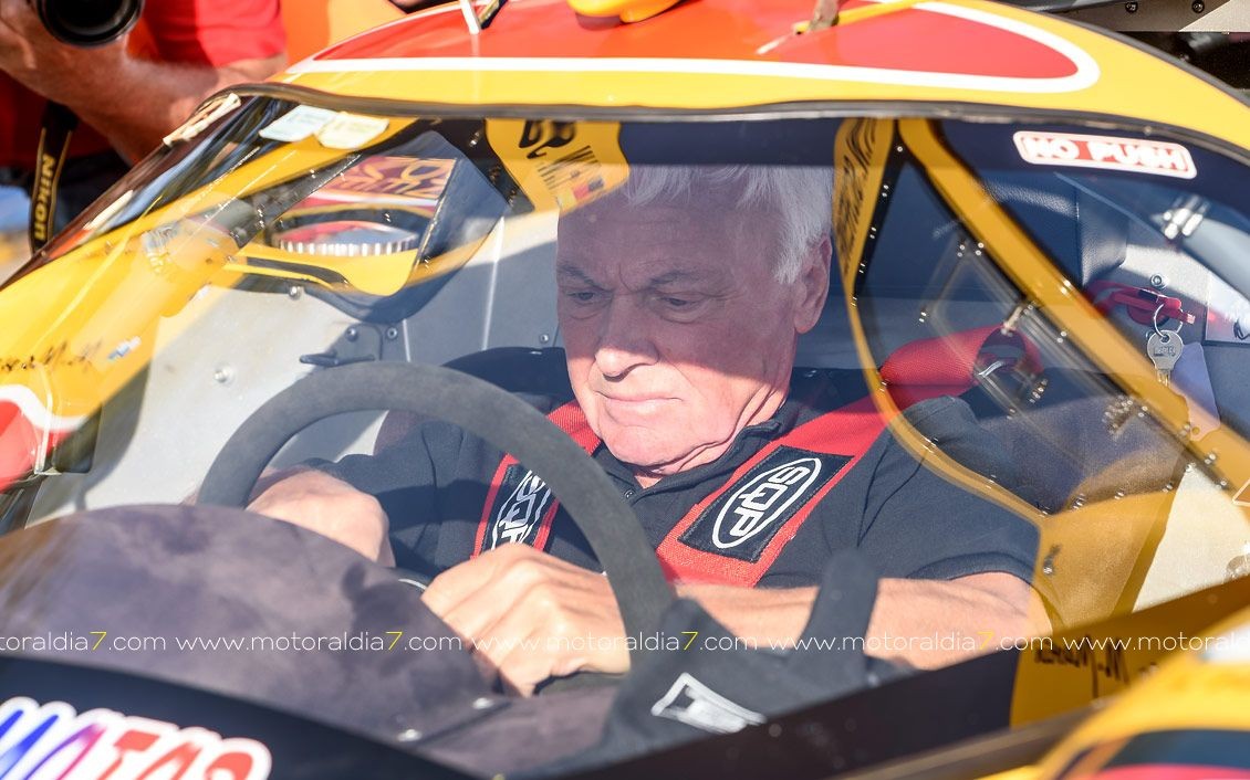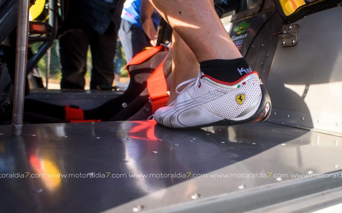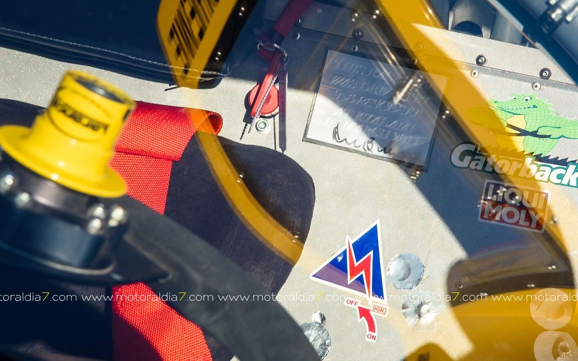 También se ponía a los mandos Modesto Martín, que tuvo más complicado poder acomodarse en el habitáculo, pero que al final también salía a pista con el. Todo ello tras solventar un pequeño problema surgido en una de las palometas de la inyección (se doblaba de la presión y el motor quedaba acelerado) El piloto grancanario daba rápidamente con el problema, al parecer la presión de los turbos era muy alta y esto ocasionaba estos problemitas.