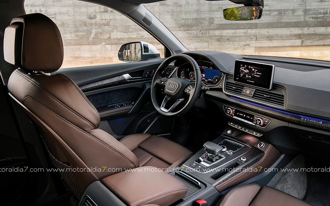 En el interior, presenta espacio para todos, y además también más sensación de espacio. La elección de los materiales y la terminación y ajuste de las piezas elevan la calidad percibida, y que a la práctica supone que el Audi Q5 entra bien por la vista y por el tacto, siempre refinado.