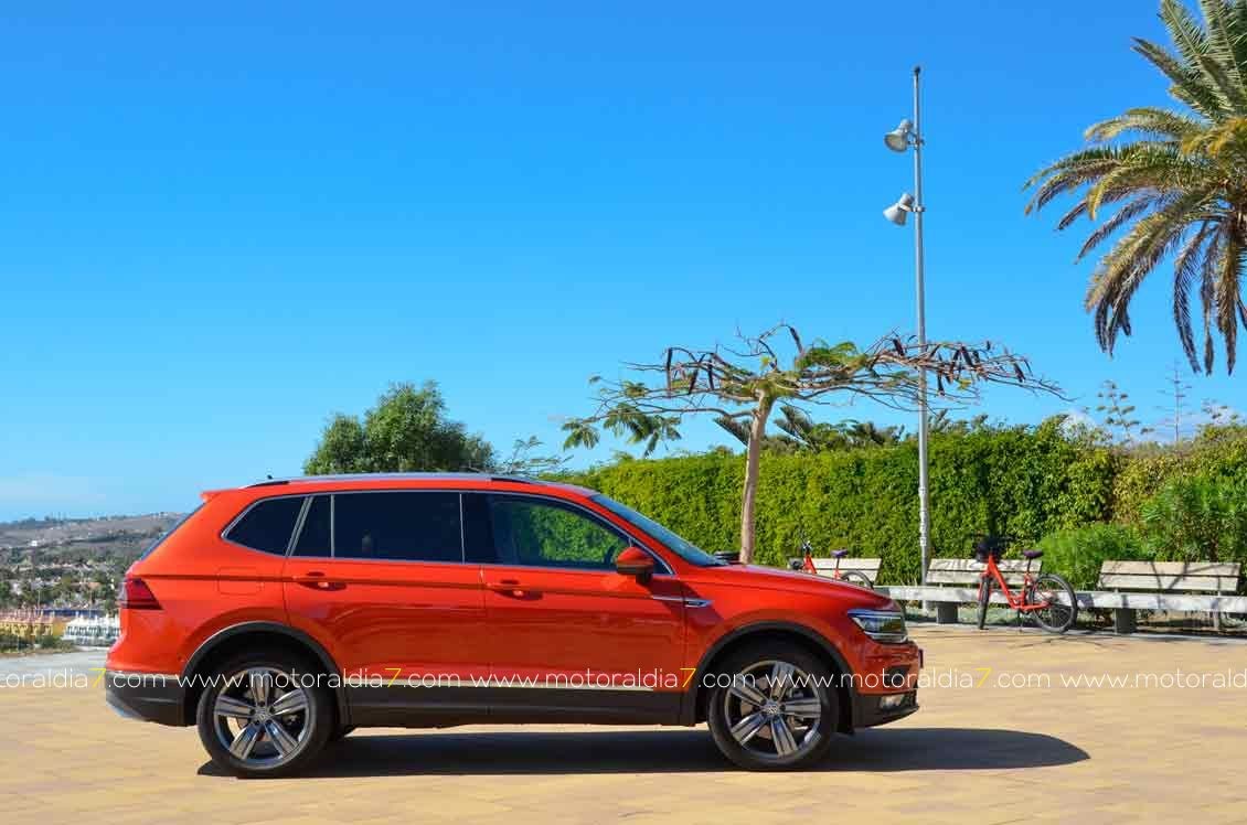 Se trata de un de los Top en la lista de los SUV más vendidos en Canarias y también en Europa, en sus dos variantes de tracción delantera y 4x4. Ahora el nuevo Tiguan Allspace crece en 215mm respecto al clásico Tiguan. La nueva variante del SUV de la marca aumenta sus dimensiones claramente, lo que permite instalar una tercera fila de asientos. El Tiguan Allspace, con un volumen de carga del maletero de 700 litros, se recomienda como alternativa para todos aquellos conductores o familias que, por exigencias de espacio, hasta ahora dependían prácticamente de los monovolúmenes.