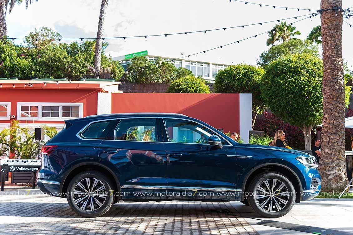 De la mano del futbolista grancanario Vitolo, jugador del Atlético de Madrid y embajador de la marca, así como Magui Melián, gerente de VW Canarias, el VW Touareg se presentó a la prensa especializada de Canarias.