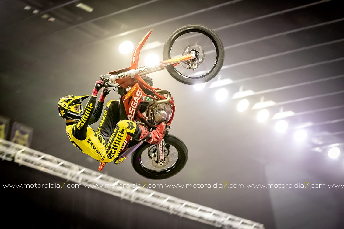 El Gran Canaria Arena se volcó con los doce pilotos que protagonizaron una noche inolvidable repleta de saltos, trucos imposibles, duelos en el aire, sorteos, regalos, malabarismos y efectos visuales