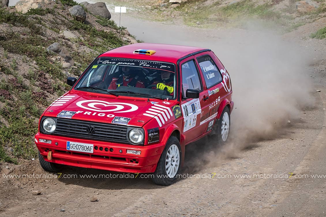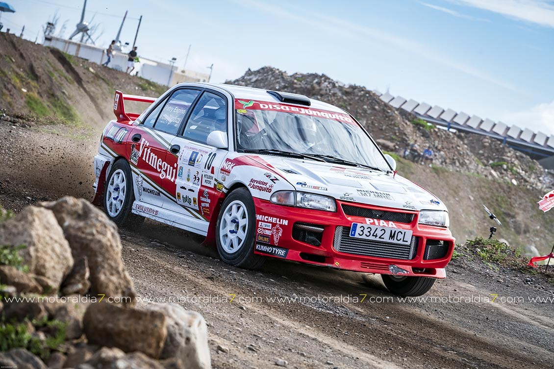 De la cuarta plaza se adueñaba Pedro Cuarental-José Luis Verde con otro Mitsubishi Lancer Evo, por sólo un segundo de ventaja sobre el equipo de Fuerteventura, Iriome Perdomo-Francisco Cabrera con su habitual Subaru Impreza.