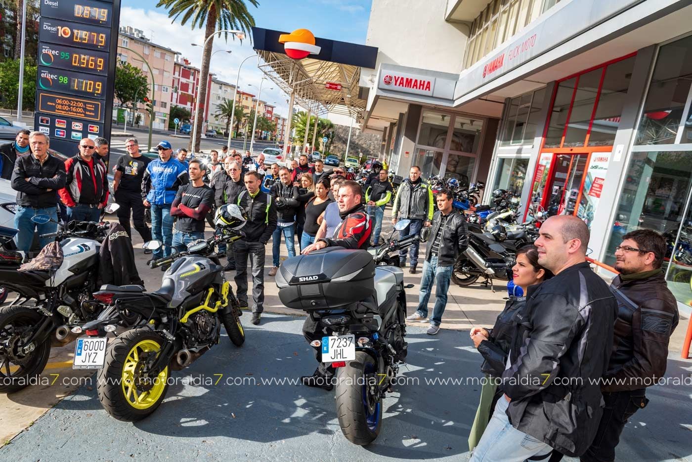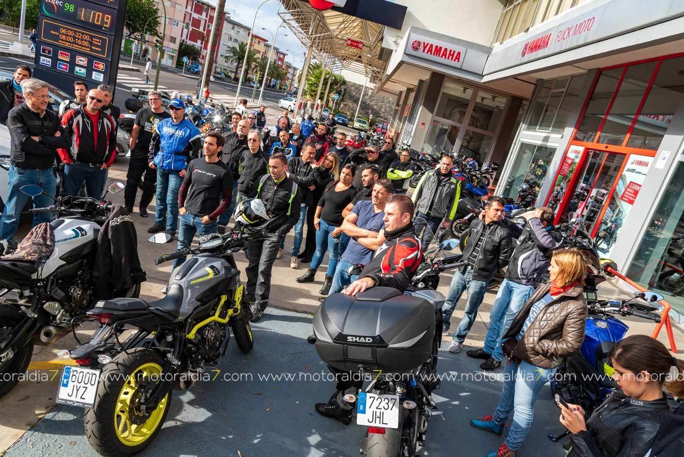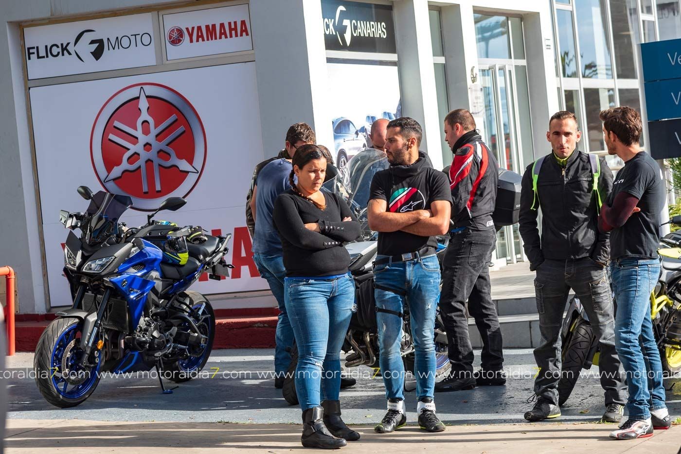 Desde las 9 de la mañana se fueron congregando en las instalaciones de Flick Moto en la Avenida de Escaleritas, los 50 yamahistas que habían confirmado su asistencia y que no fallaron, ya que se da la circunstancia de que otros que si habían confirmado la asistencia a la ruta, al final no lo hicieron.