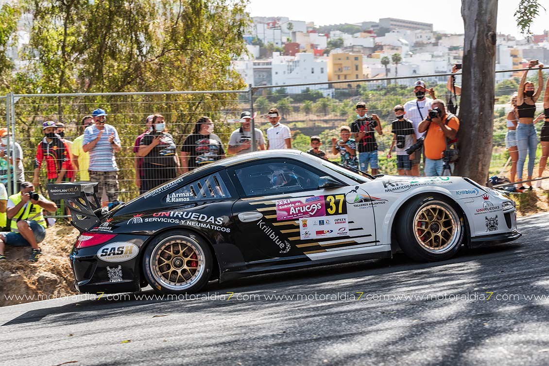 Tercera victoria del año para Miguel Cabral y su potentísimo Mitsubishi Evo X, esta vez fue el más rápido de todos los vehículos presentes en la 21º Subida de Arucas, 1:52.820.