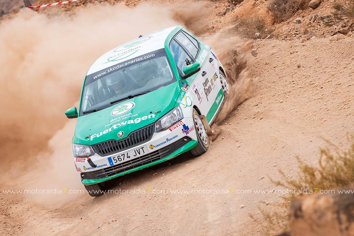 Buen debut en Fuerteventura de Raúl Capdevila con Yeray Mujica a la derecha de su VW Polo N1, ganadores del primer tramo de la prueba y que al final se quedaban a sólo 0,4 segundos de la quinta plaza, un susto en el primer tramo del sábado y una penalización al reparar los desperfectos en un salto, le hacía retrasarse.