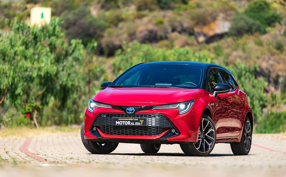 Queda patente, en sus líneas maestras, que estamos ante un Toyota, pero sí que se nota ese toque deportivo que lo diferencia de los demás coches de la competencia. Por ejemplo, la estrecha parrilla superior incorpora unos grupos ópticos LED con Luces de Circulación Diurna —Daytime Running Lights (DRL)— integradas. O la zona alrededor de la gran parrilla inferior trapezoidal que esta generosamente hacia delante. Es menos puntiaguda y más vertical, lo que da lugar a una reducción del voladizo delantero del vehículo. En los bordes invertidos del alerón frontal se encuentran unos nuevos faros antiniebla LED. El propio entramado de la parrilla presenta además un diseño más articulado y refinado.