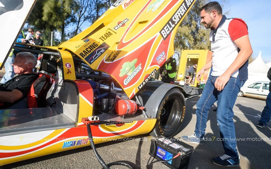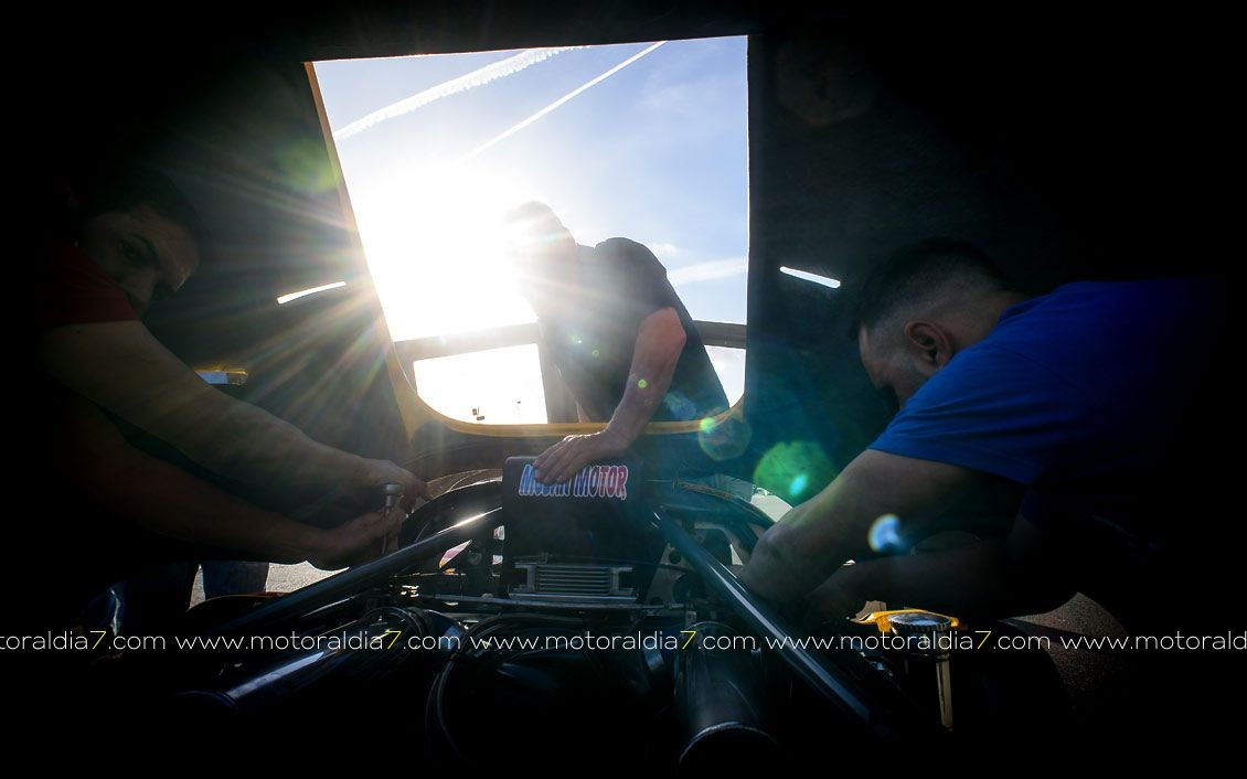 También se ponía a los mandos Modesto Martín, que tuvo más complicado poder acomodarse en el habitáculo, pero que al final también salía a pista con el. Todo ello tras solventar un pequeño problema surgido en una de las palometas de la inyección (se doblaba de la presión y el motor quedaba acelerado) El piloto grancanario daba rápidamente con el problema, al parecer la presión de los turbos era muy alta y esto ocasionaba estos problemitas.