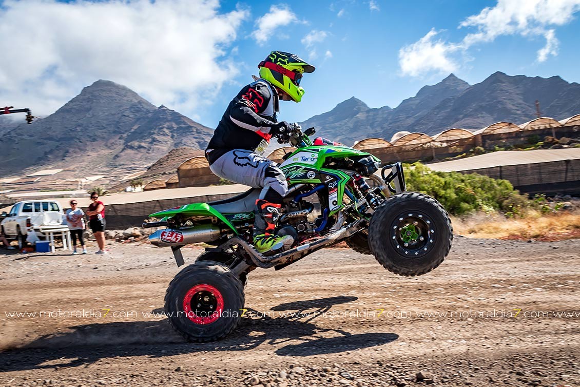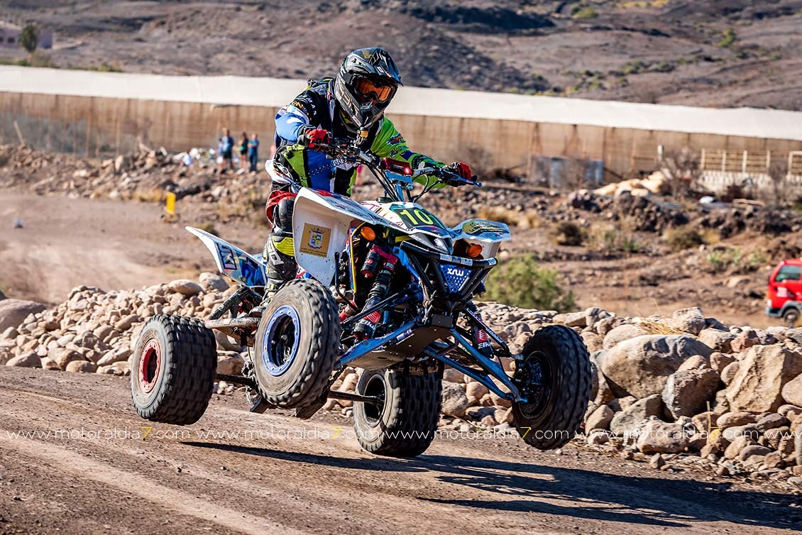 Y entre los quads, con sólo tres representantes, Javi Peña fue el claro dominador con el Suzuki LTR, con medio minuto de diferencia sobre Nauzet Sáncez y su Kawasaki, mientras Marcos Ponce se quedaba sin cadena y abandonaba.