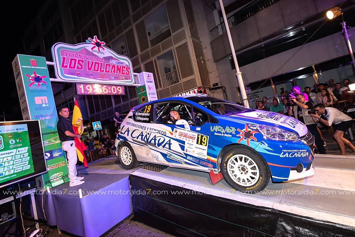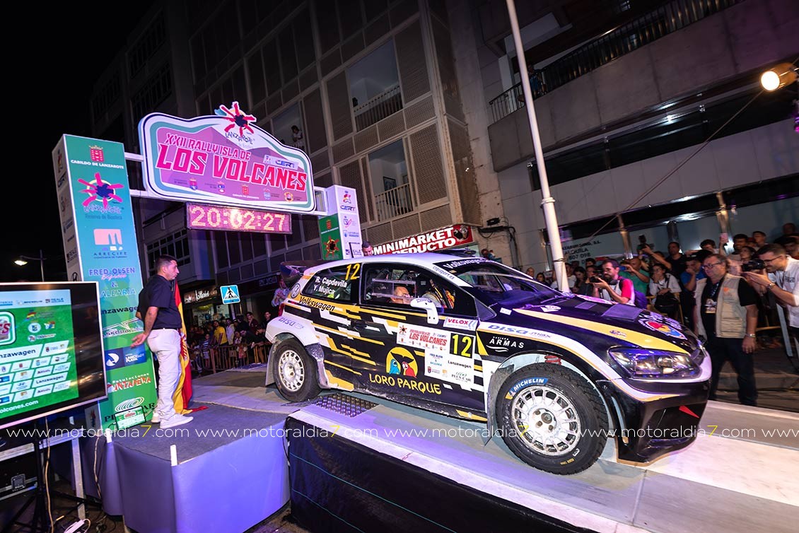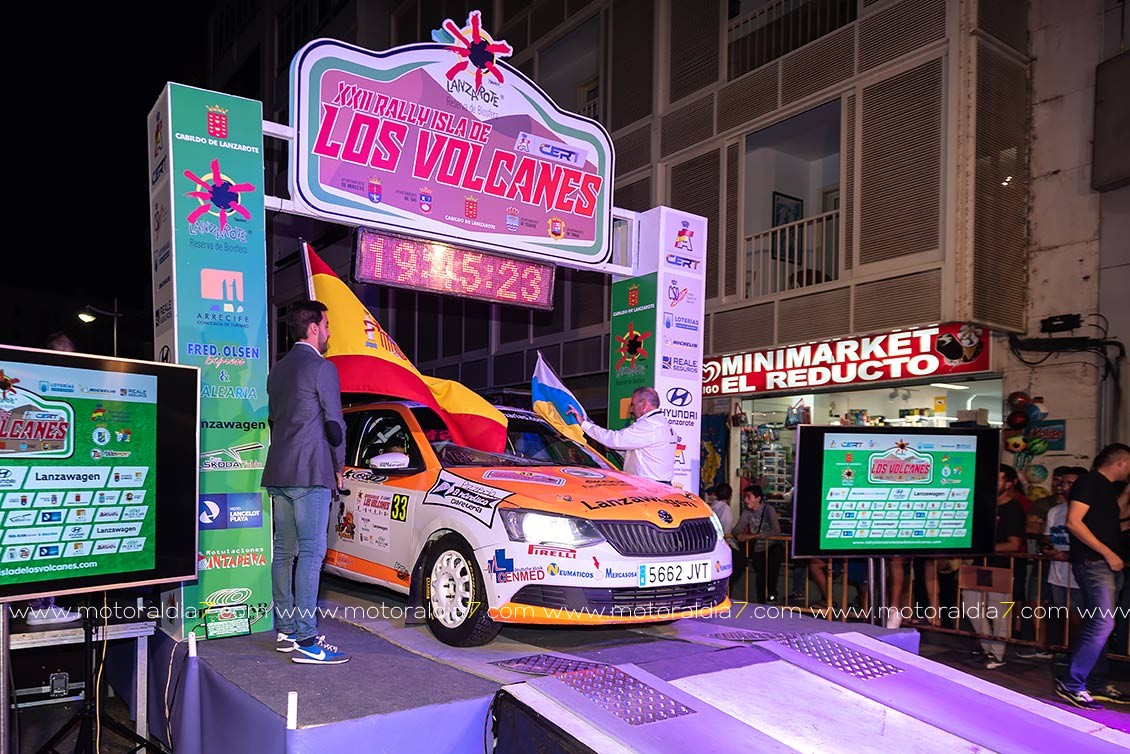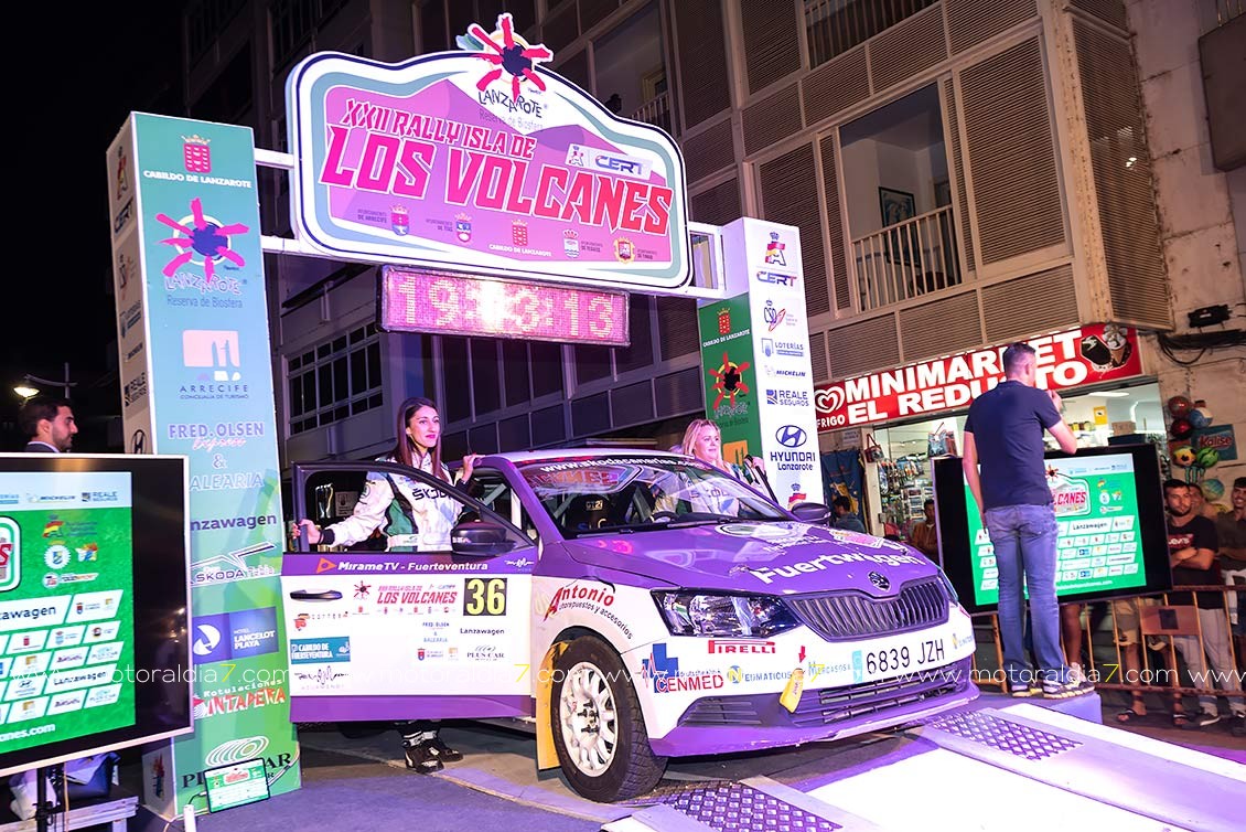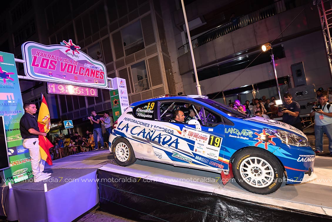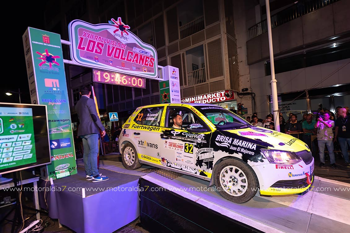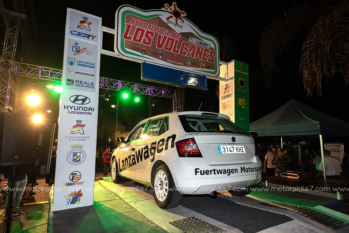 La edición número 22 del Rally Isla de Los Volcanes se ha puesto en marcha. Cada uno de los equipos participantes ha presentado armas en la rampa de salida situada junto a la Playa del Reducto de Arrecife y ya sólo queda que el cronómetro dicte sentencia en los once tramos cronometrados.
