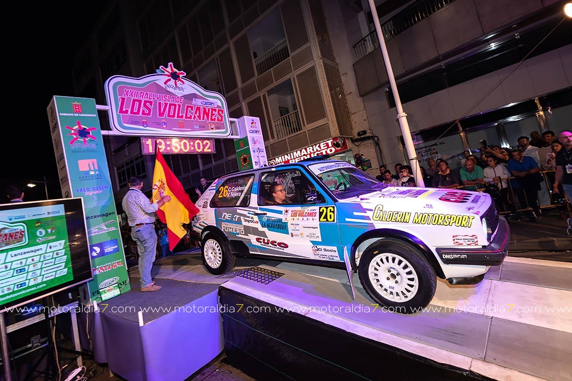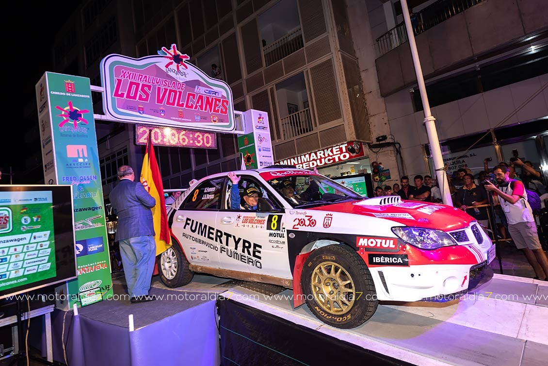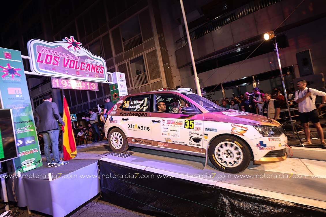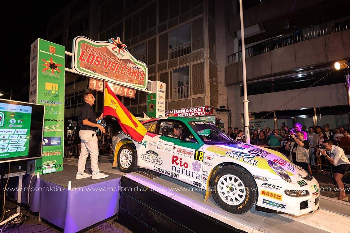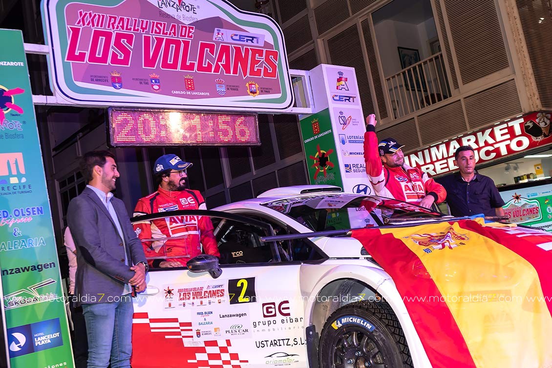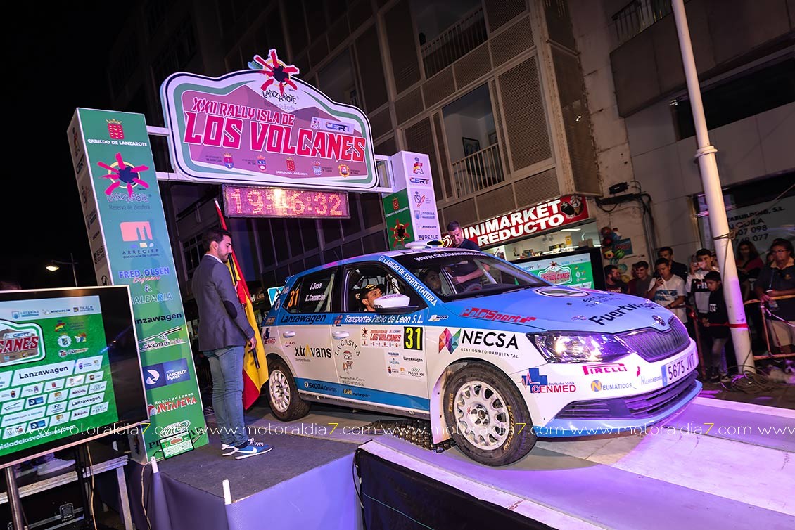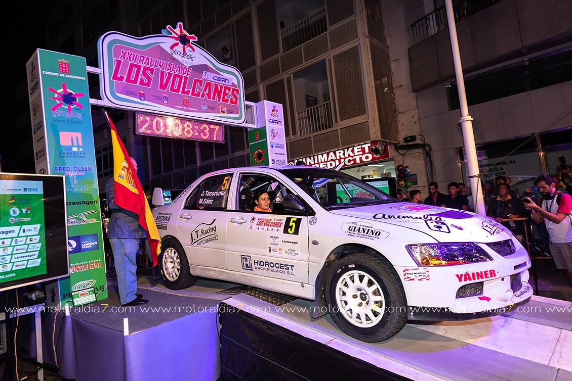 La edición número 22 del Rally Isla de Los Volcanes se ha puesto en marcha. Cada uno de los equipos participantes ha presentado armas en la rampa de salida situada junto a la Playa del Reducto de Arrecife y ya sólo queda que el cronómetro dicte sentencia en los once tramos cronometrados.