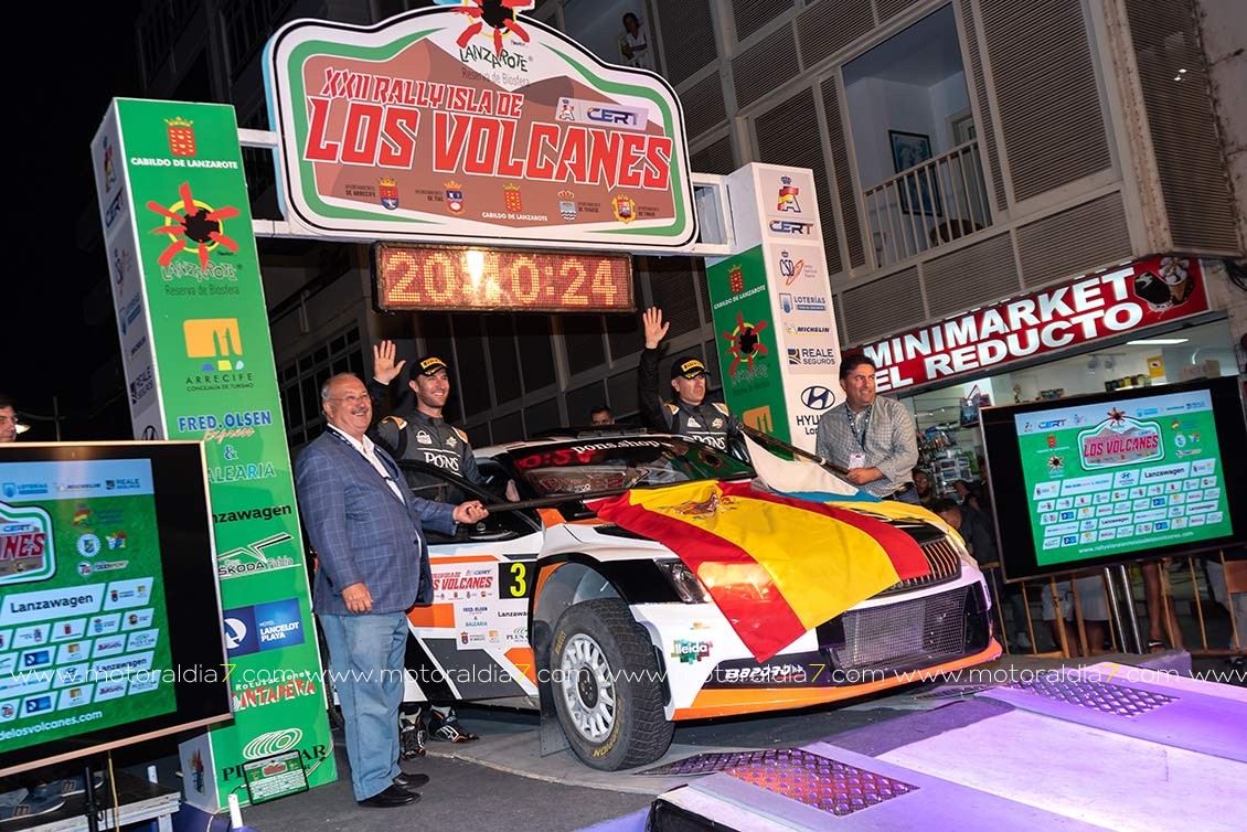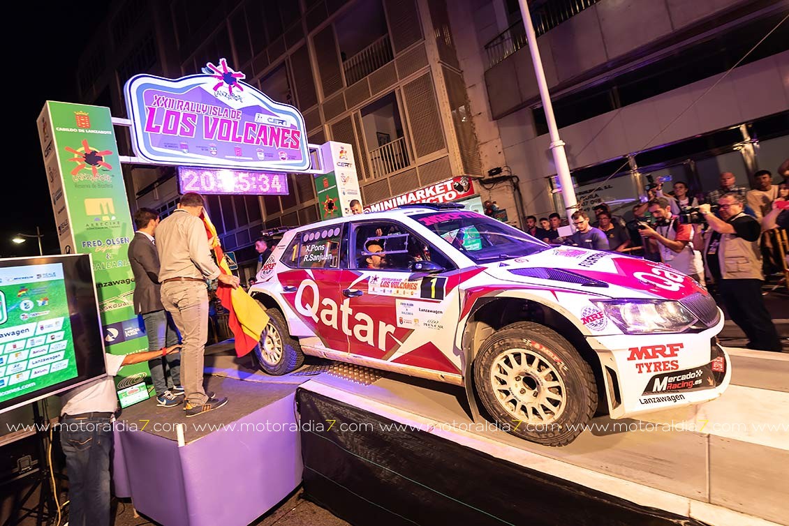 El equipo ya proclamado campeón, Xevi Pons y Rodrigo Sanjuán (Skoda Fabia R5), sólo ha podido ser cuarto por delante de los líderes del regional canario, Jesús Tacoronte-María Sáez (Mitsubishi Lancer Evo VIII). A continuación, con diferencias mínimas, se han clasificado Juan Carlos de la Cruz-Miguel Ángel Rodríguez, Javier Fránquiz-Pedro José Viera (Mitsubishi Space Star Proto) y Aníbal Hernández-Jonathan Hernández (Mitsubishi Lancer Evo VI). Raúl Capdevila-Yeray Mujica (Volkswagen Polo N1) y Francisco Javier Martín-Guacimara Arbelo (Mitsubishi Proto) han completado la tabla del tramo de calificación del XXII Rally Isla de Los Volcanes en sus diez primeras posiciones.
