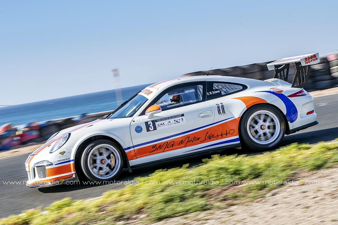 El pasado domingo en el Circuito de Maspalomas se disputaron las dos últimas carreras del Campeonato de Canarias de Velocidad, que tuvieron de protagonista al Porsche 911 GT3 del veterano piloto alemán afincado en Gran Canaria, Heinz Walter Schewe, ya que inscrito en la categoría Extreme obtuvo pleno de victorias, durante una soleada jornada dominical en el trazado sureño, con 15 coches en pista de los 17 inscritos, algunos viajando desde Tenerife, y bajo la organización habitual de la Escudería Maspalomas.