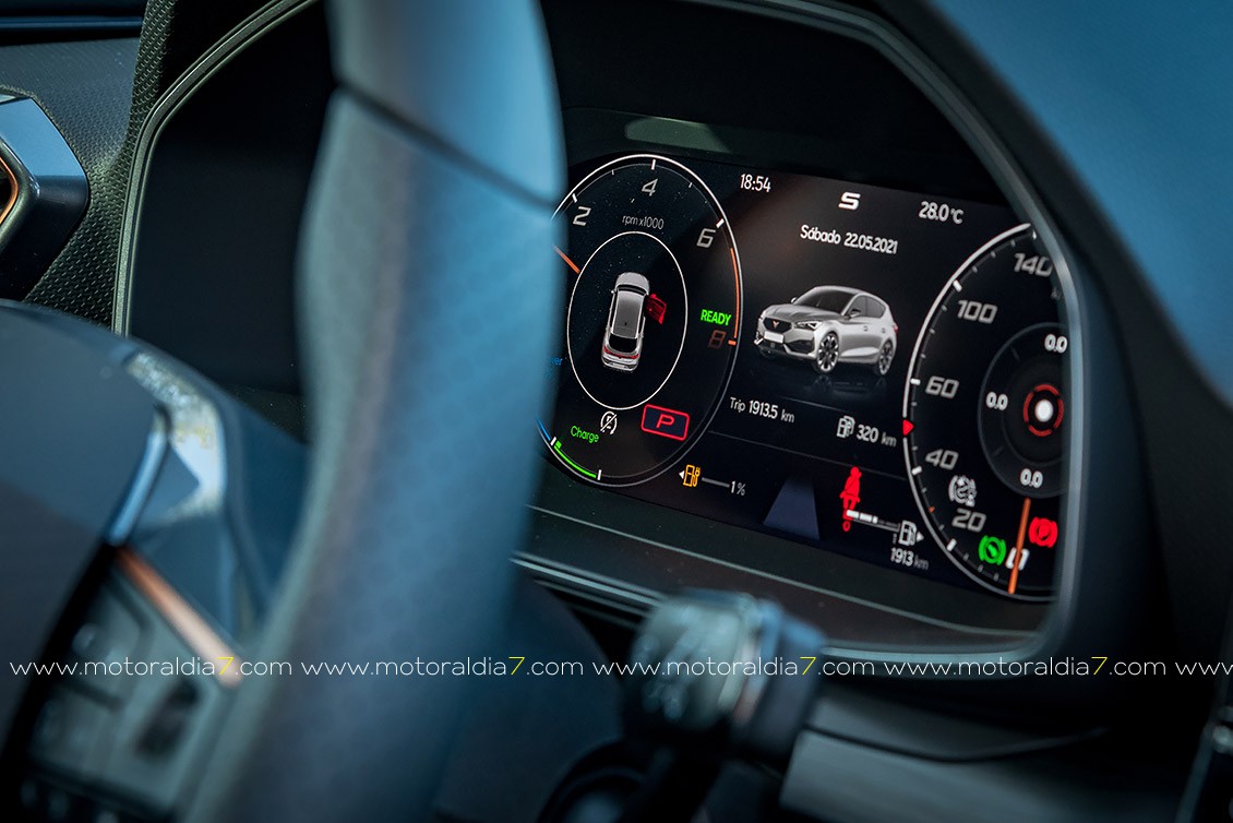 Por su parte, el conductor también tiene a su disposición el Control Dinámico de Chasis (DCC) para variar la firmeza de los amortiguadores, y el selector de los modos de conducción CUPRA Drive Profile (ambos sistemas de serie). Éste último ajusta el modo de hibridación del sistema de propulsión, la dureza de la suspensión y de la dirección, la respuesta tanto del motor como de la caja de cambios DSG, el funcionamiento del climatizador, y el control de crucero adaptativo y predictivo (ACC).