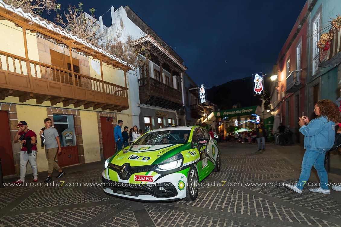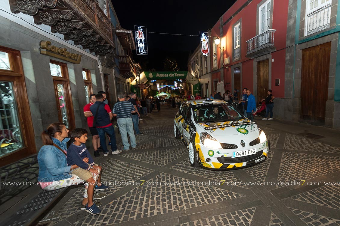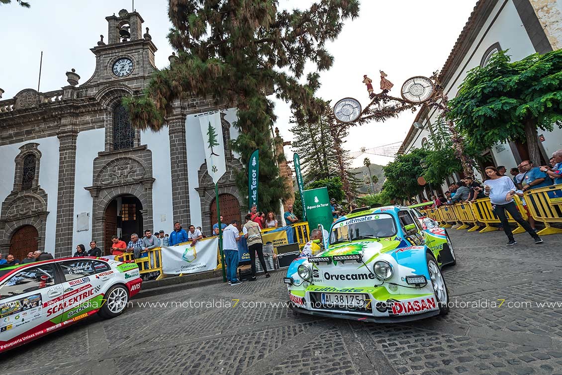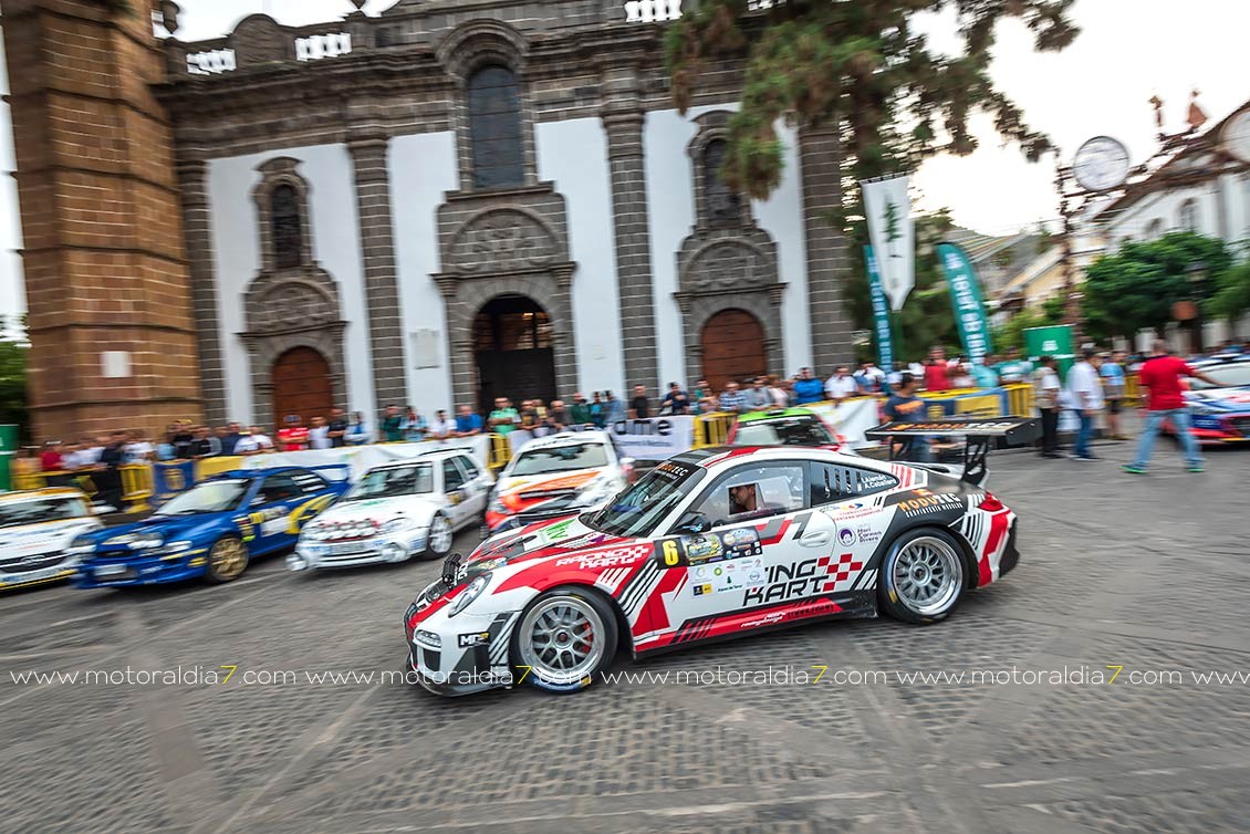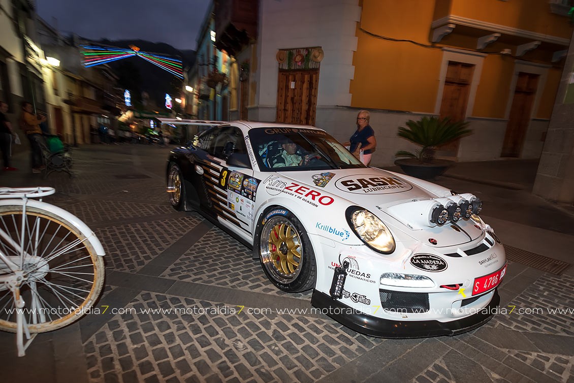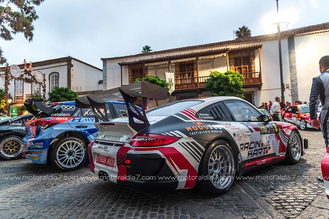 El Rally Villa de Teror arrancó esta noche con el liderato de Iván Alemán y Bernardino Guerra que, aunque se quejaron de problemas eléctricos en su Porsche 911 GT3, marcaron el mejor tiempo en el primer tramo y se acuestan líderes de la prueba.