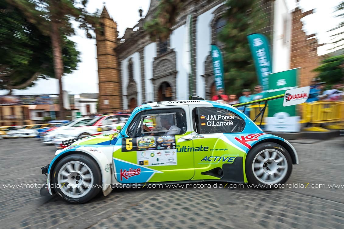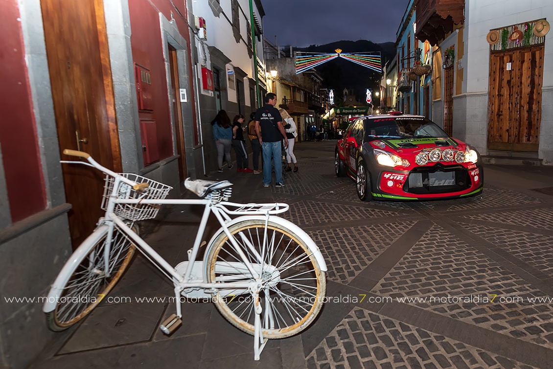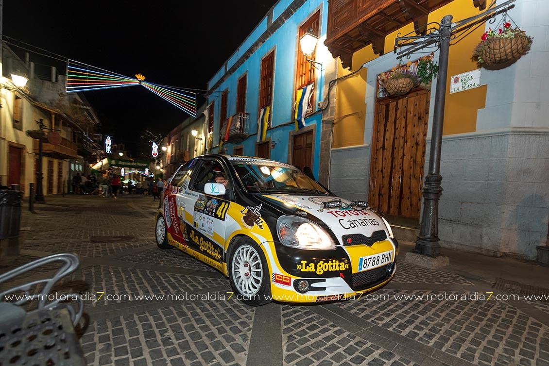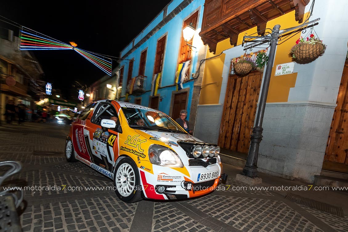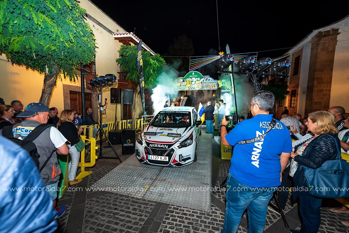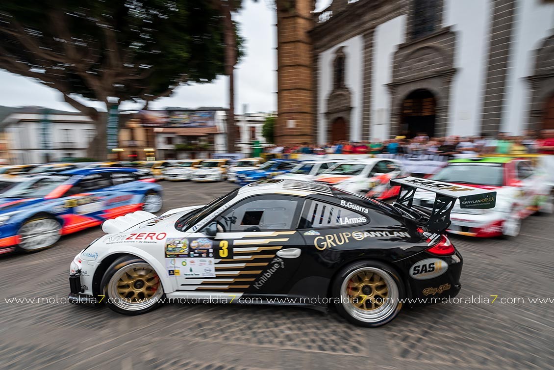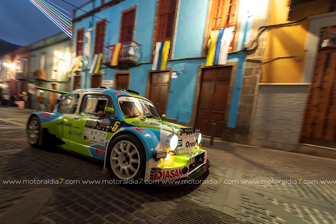 El Rally Villa de Teror arrancó esta noche con el liderato de Iván Alemán y Bernardino Guerra que, aunque se quejaron de problemas eléctricos en su Porsche 911 GT3, marcaron el mejor tiempo en el primer tramo y se acuestan líderes de la prueba.