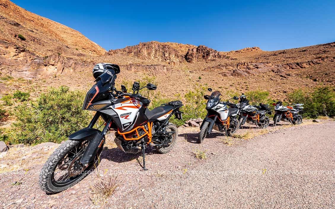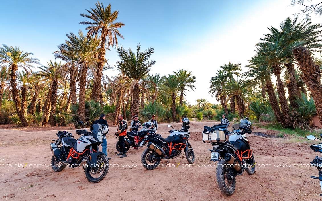 Para llegar a nuestro Hotel este día, Samir nos tenia preparada una pista de tierra bastante fácil y ancha. Era su forma de ver el nivel de cada uno en conducción en tierra, para poder planificar las rutas de los días siguientes. Todos pasamos el examen con nota, incluidos Javi y Lidia que hacían el viaje en pareja sobre su KTM 1190. Incansable Lidia, que nos sorprendía a todos por sus cualidades como acompañante de Javi, y daba gusto verlos a ambos en tierra.