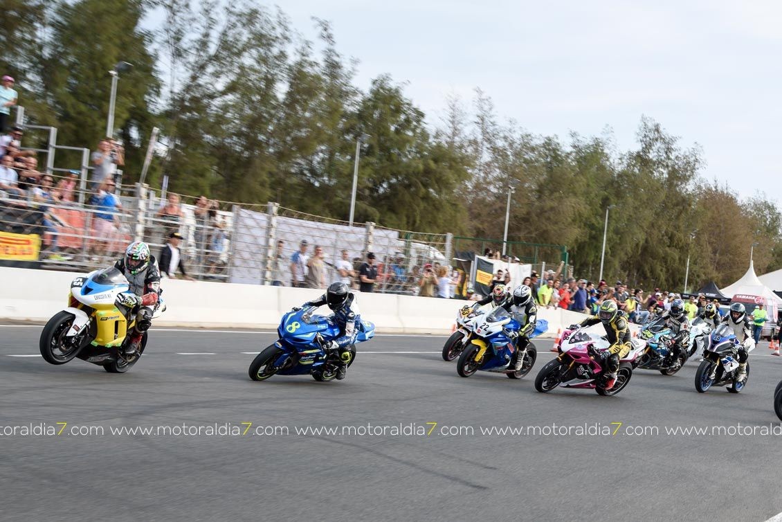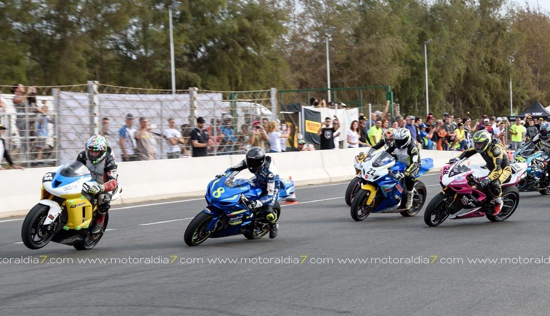 El Circuito de Maspalomas se ha convertido en el escenario donde se da rienda suelta a la pasión por las motos y ayer se volvió a refrendar con bonitos duelos en pista y con una carrera que dejará huella.