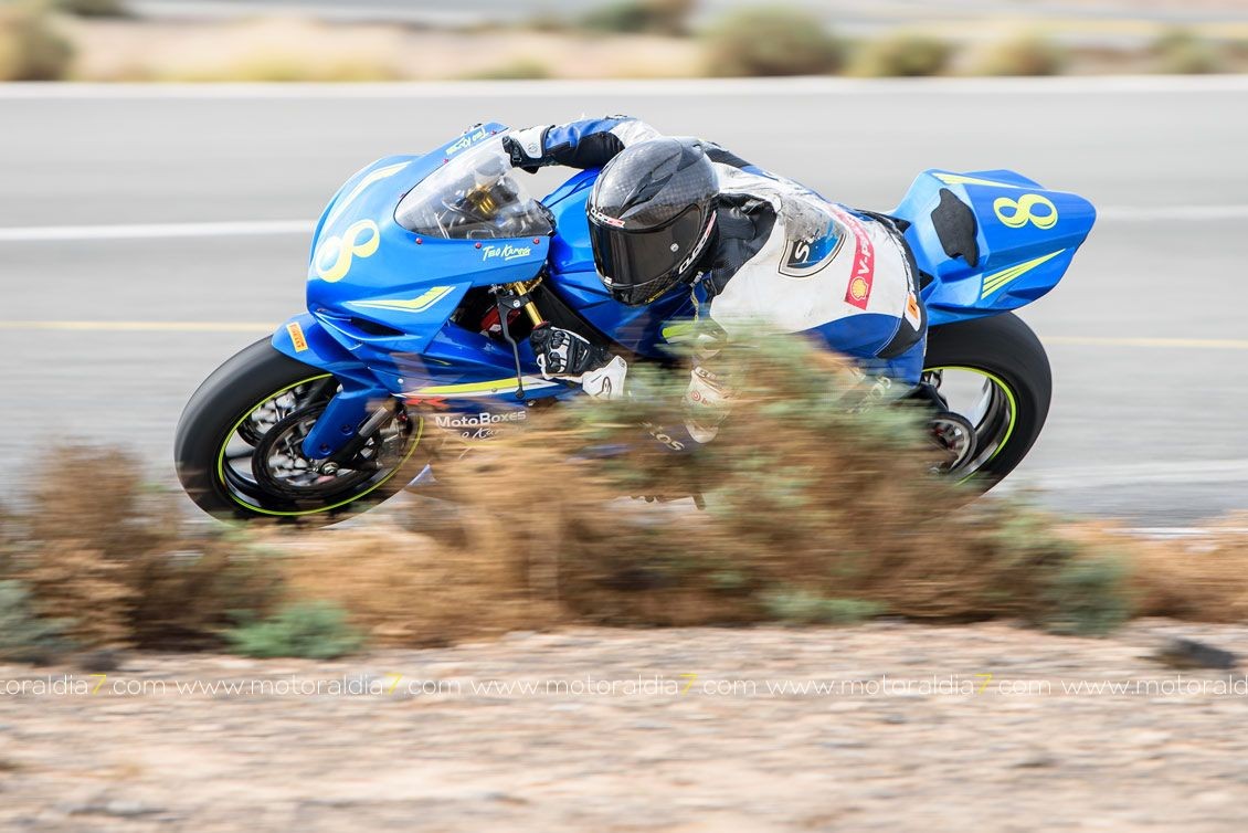El Circuito de Maspalomas se ha convertido en el escenario donde se da rienda suelta a la pasión por las motos y ayer se volvió a refrendar con bonitos duelos en pista y con una carrera que dejará huella, ante la presencia de cientos aficionados que aprovechando la buena climatología se acercaban hasta el trazado de El Berriel para seguir el desarrollo de esta última prueba del CCVMotoBoxes que coronaba a los campeones en la especialidad de Resistencia, una de las más seguidas en Canarias.