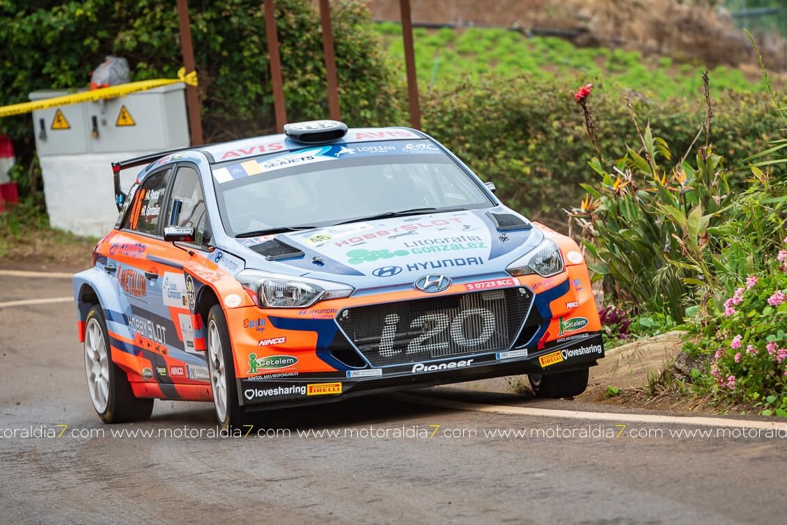 Ya en la sexta plaza, Pernía y Peñate sufrían muchísimo con la electrónica de su Hyundai i20 R5, que al final le permitía terminar por delante de un espléndido Toñi Ponce y Rubén González con el coche de Hyundai Canarias.