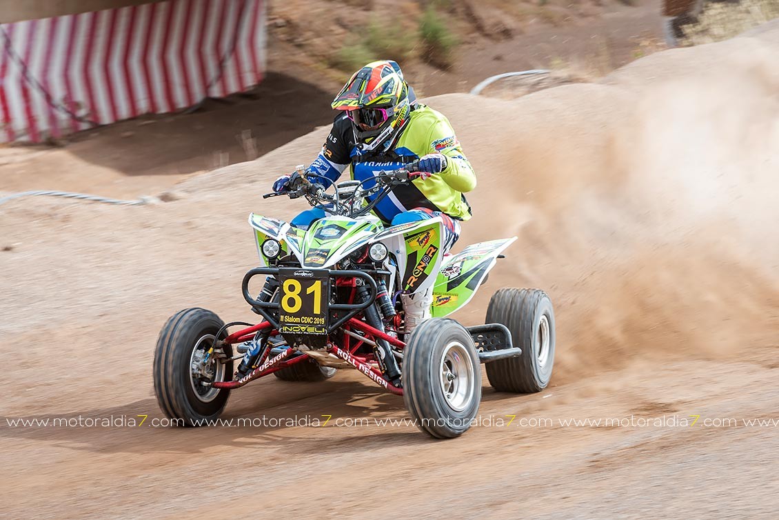Por otro lado, los Quad también se apuntaban al espectáculo en la CDIC, aunque Miguel González fue el más regular de todos y con su Suzuki LTR 450 se hizo con una merecida victoria, la cual podría haber estado luchando por ella Javier Peña, pero un error en la primera manga hipotecó sus posibilidades, teniéndose que conformar con la segunda plaza de la general a poco más de 9 segundos del ganador. Y ya en la tercera posición, Jonay Salazar con la Honda TRX 450 se quedaba a 7,4 de la tercera plaza.