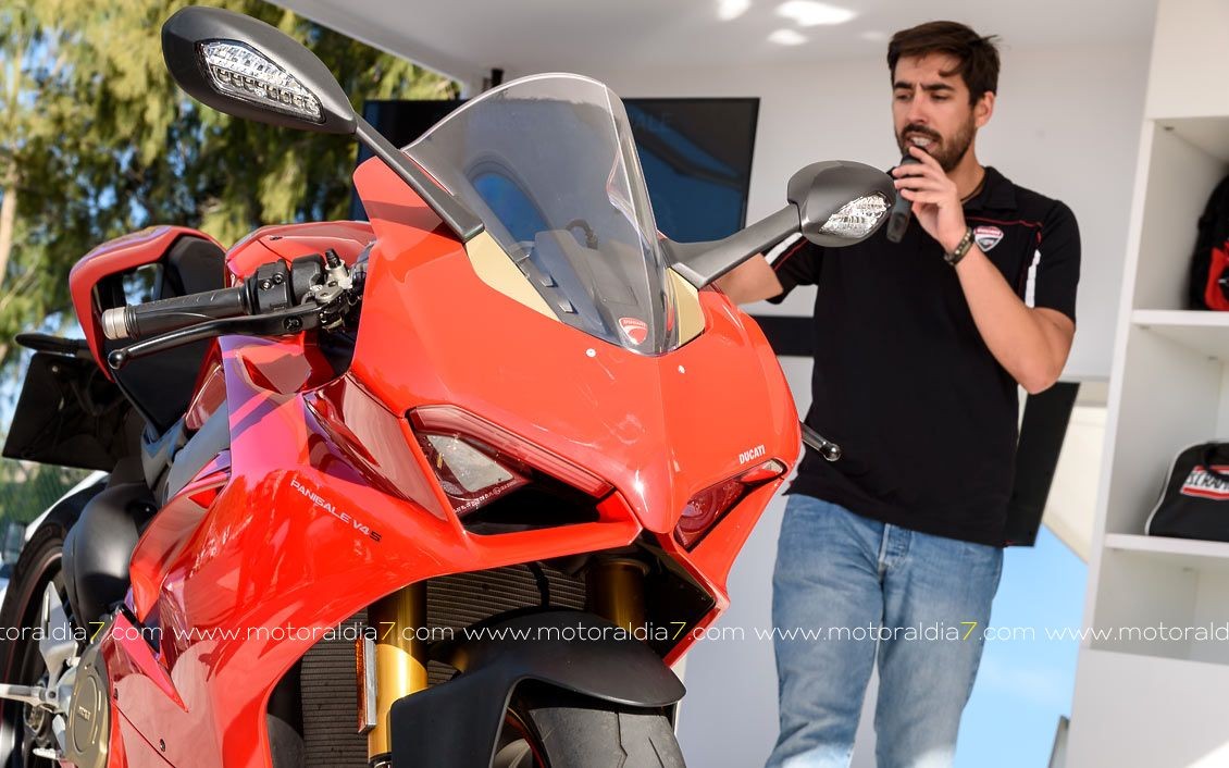 La presentación comenzaría con las palabras de Carlos Riaza, Brand Manager de Ducati Canarias y Jorge Gómez como Jefe de Ventas y piloto Ducati, que pusieron a los presentes en precedentes de lo que estábamos a punto de conocer, ya que la gama de este modelo va a tener tres opciones de preparación: La Panigale V4 a secas, la V4 S y la V4 Speciale (edición limitada y numerada con decoración especial).