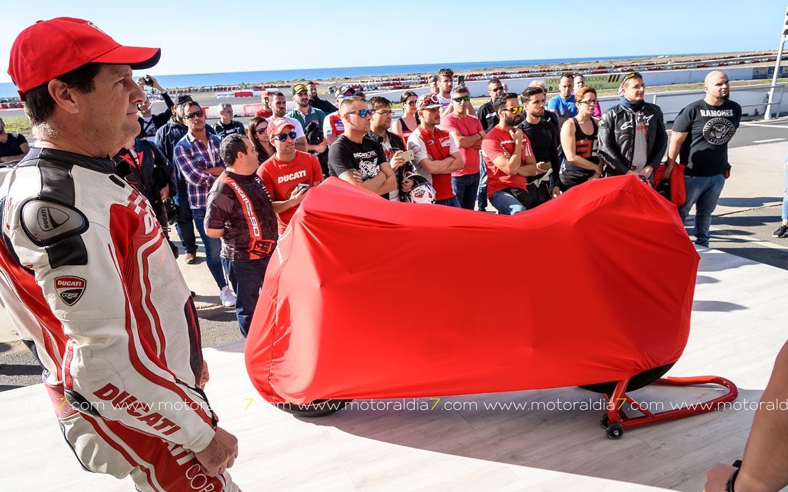 En definitiva pasamos la prueba de probar un “bicho” como este con ganas de seguir más y más rodando con ella, ya que resulta muy fácil de pilotar dada las prestaciones de las que disponemos en el puño derecho. Unas sensaciones que difícilmente se pueden sentir en la calle. Una moto como esta, está pensada para disfrutarla en circuito, por lo que el acierto de Ducati Canarias en hacer su presentación en el Circuito de Maspalomas y además de poder probarla en pista es de agradecer.