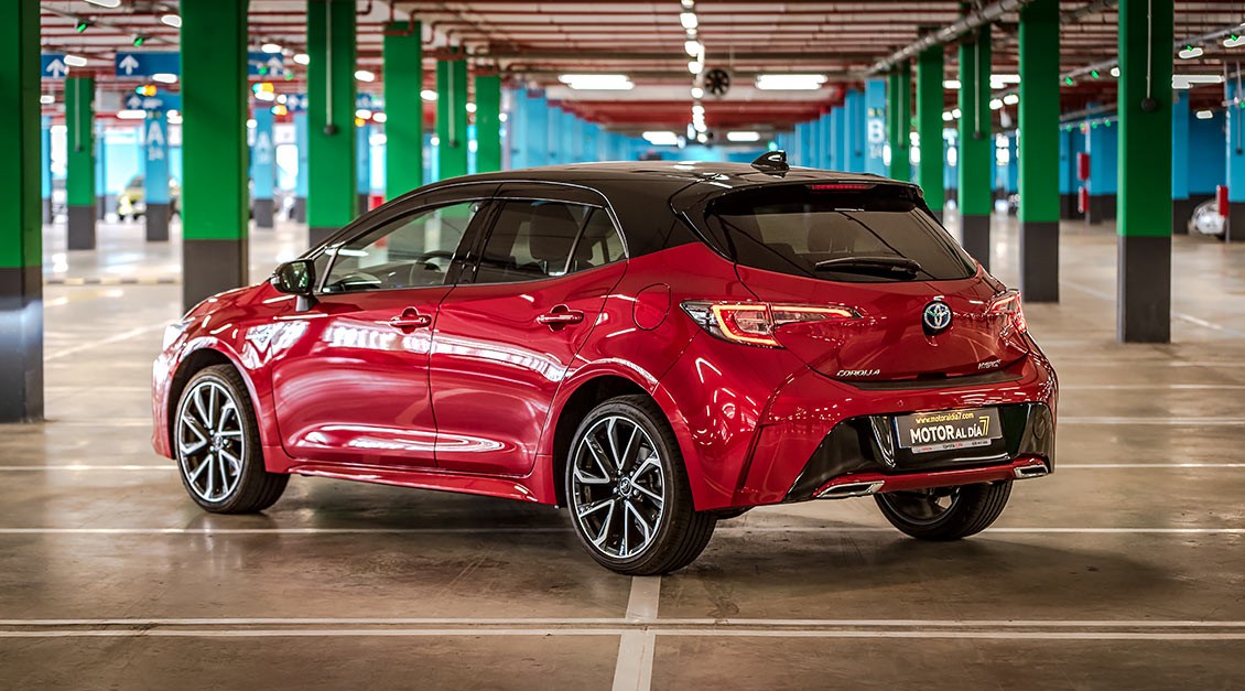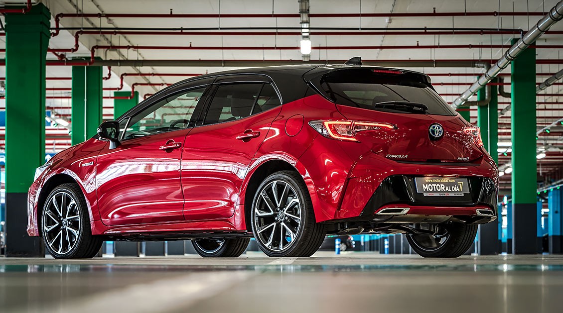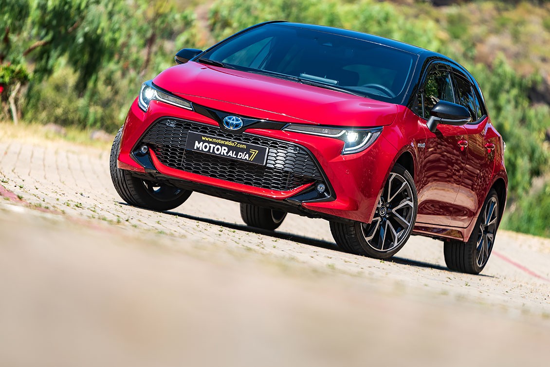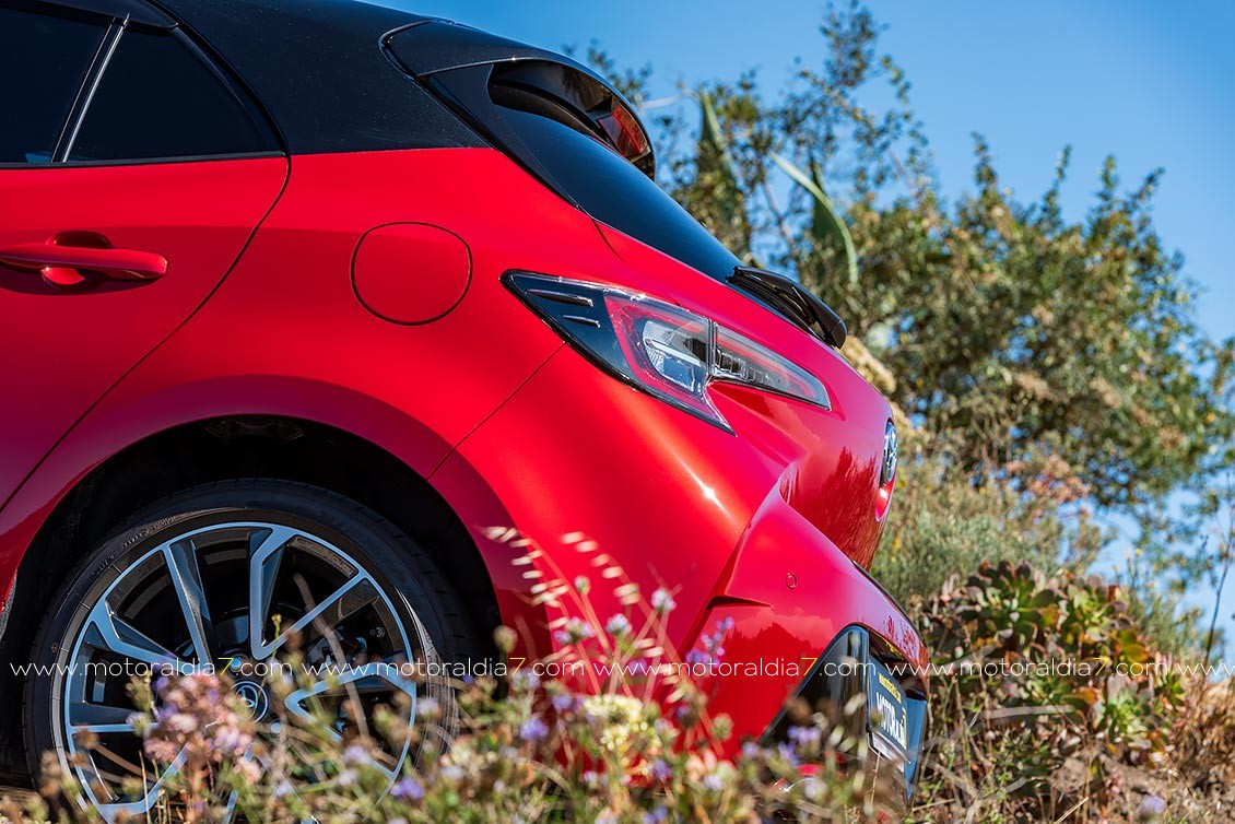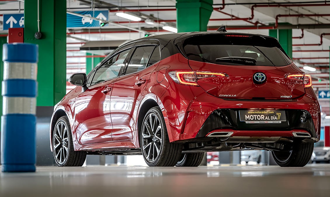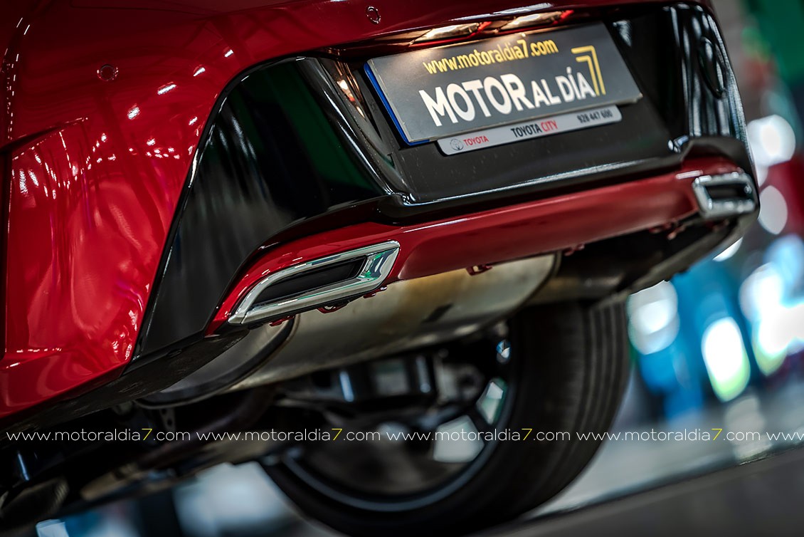 Queda patente, en sus líneas maestras, que estamos ante un Toyota, pero sí que se nota ese toque deportivo que lo diferencia de los demás coches de la competencia. Por ejemplo, la estrecha parrilla superior incorpora unos grupos ópticos LED con Luces de Circulación Diurna —Daytime Running Lights (DRL)— integradas. O la zona alrededor de la gran parrilla inferior trapezoidal que esta generosamente hacia delante. Es menos puntiaguda y más vertical, lo que da lugar a una reducción del voladizo delantero del vehículo. En los bordes invertidos del alerón frontal se encuentran unos nuevos faros antiniebla LED. El propio entramado de la parrilla presenta además un diseño más articulado y refinado.
