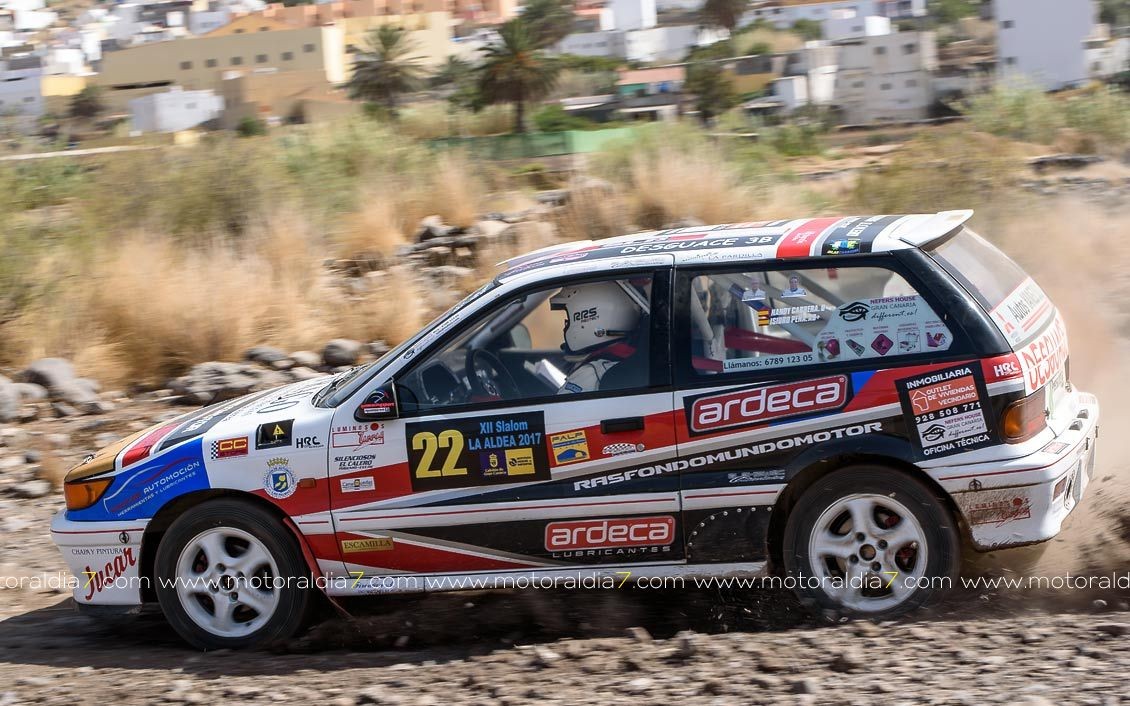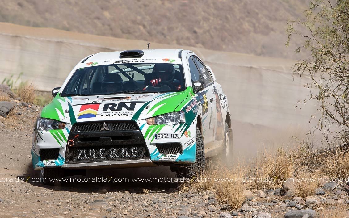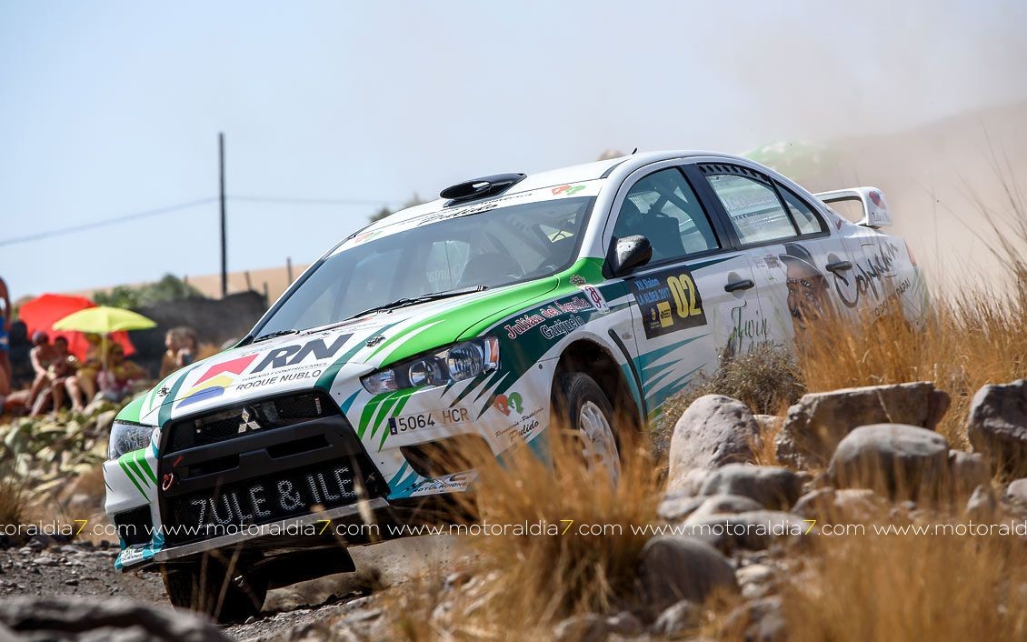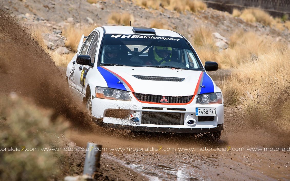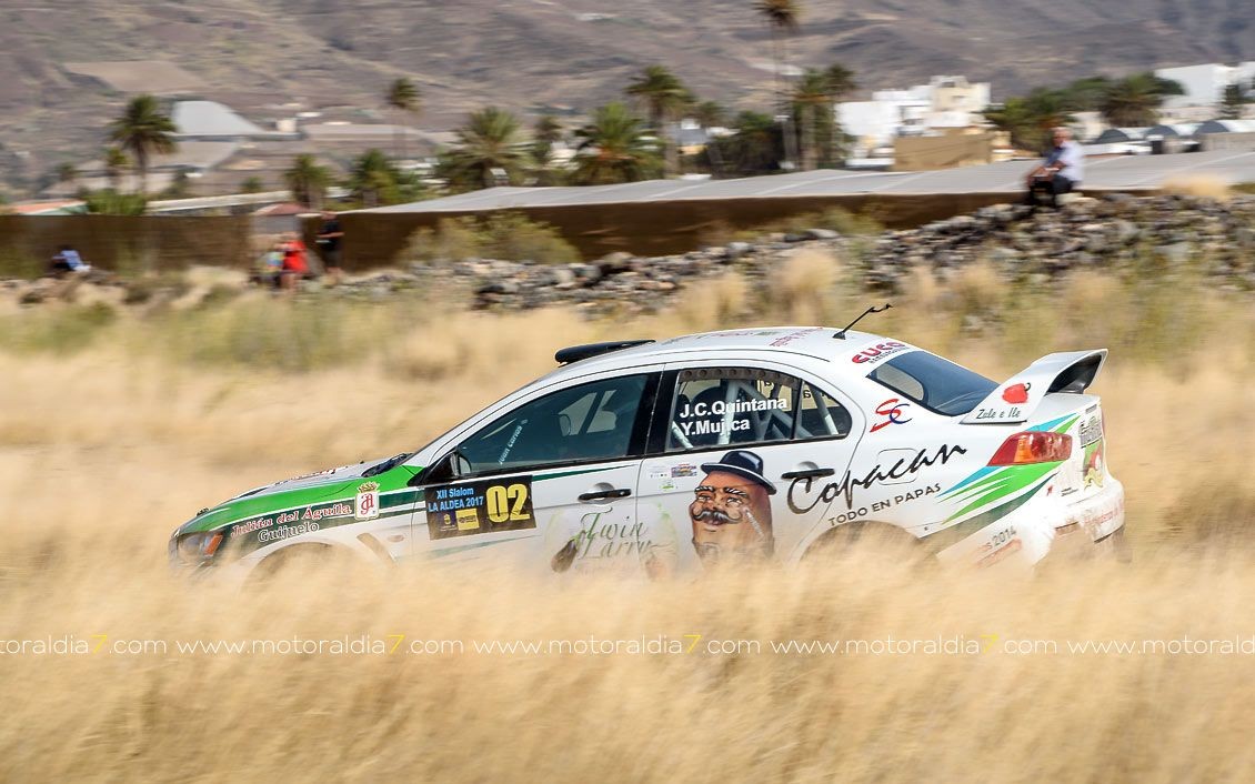 Juan Carlos Quintana y Yeray Mujica consiguieron meter a su Mitsubishi Evo X en la última manga como ganador del 1º día de competición del 12º Slalom de La Aldea.