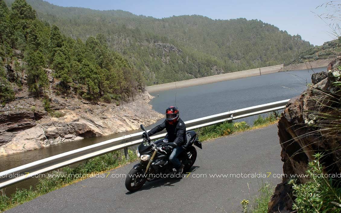 La salida comenzaba con las 40 motos reunidas a las 10:30 de la mañana, para tomar rumbo hacia Santa Brígida por la carretera del centro y tomar el desvío hacia Pino Santo. Todos los participantes asistidos por la organización que se apostaba estratégicamente en los cruces más conflictivos. Siguiendo con la ruta hasta Valleseco, para subir hasta los Pinos de Galdar y de nuevo descender hacia Fontanales. Desde Fontanales nos dirijamos a la Presa de los Pérez, pasando por Montaña Alta, donde se realizó una parada de avituallamiento sobre todo de líquidos, igual que se había realizado en el Balcón de Zamora.