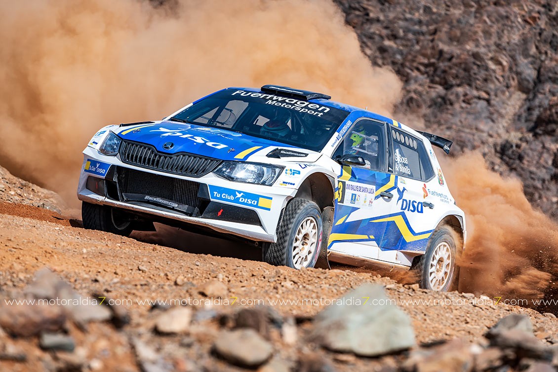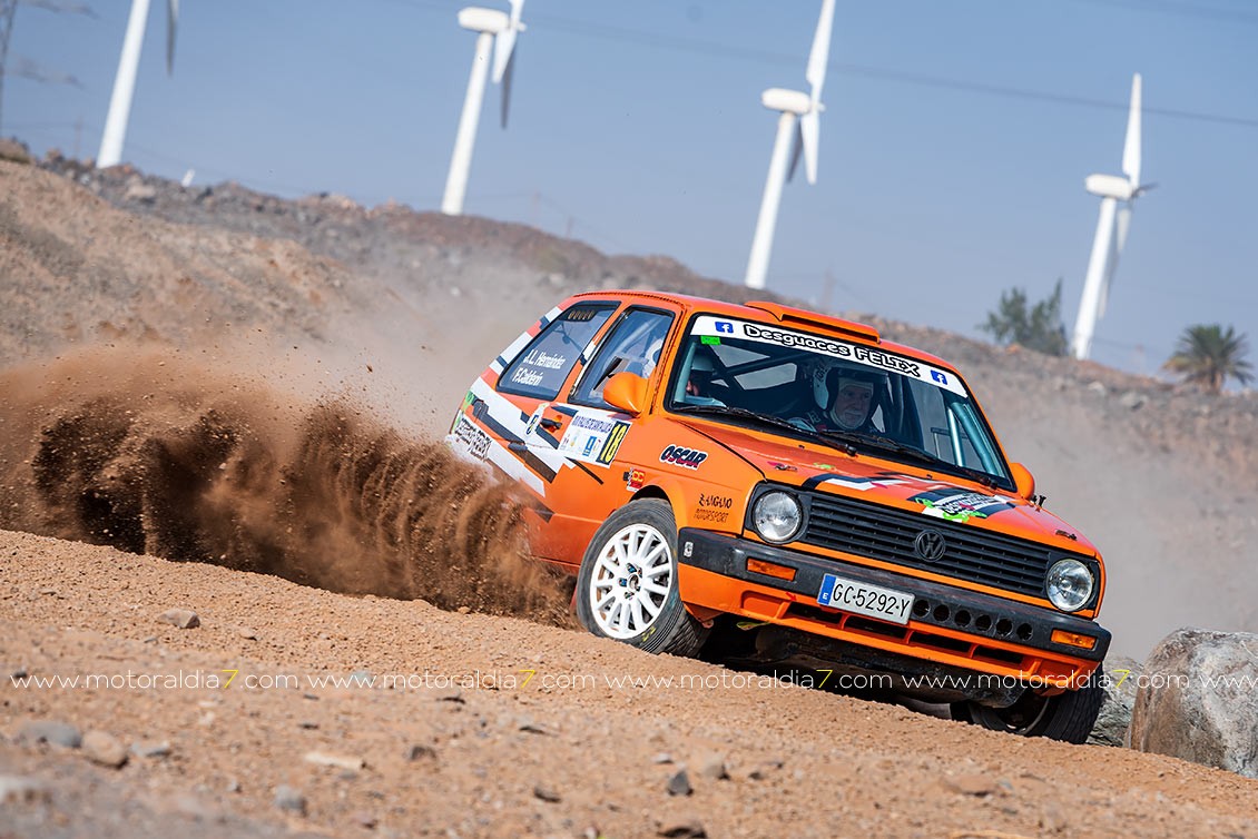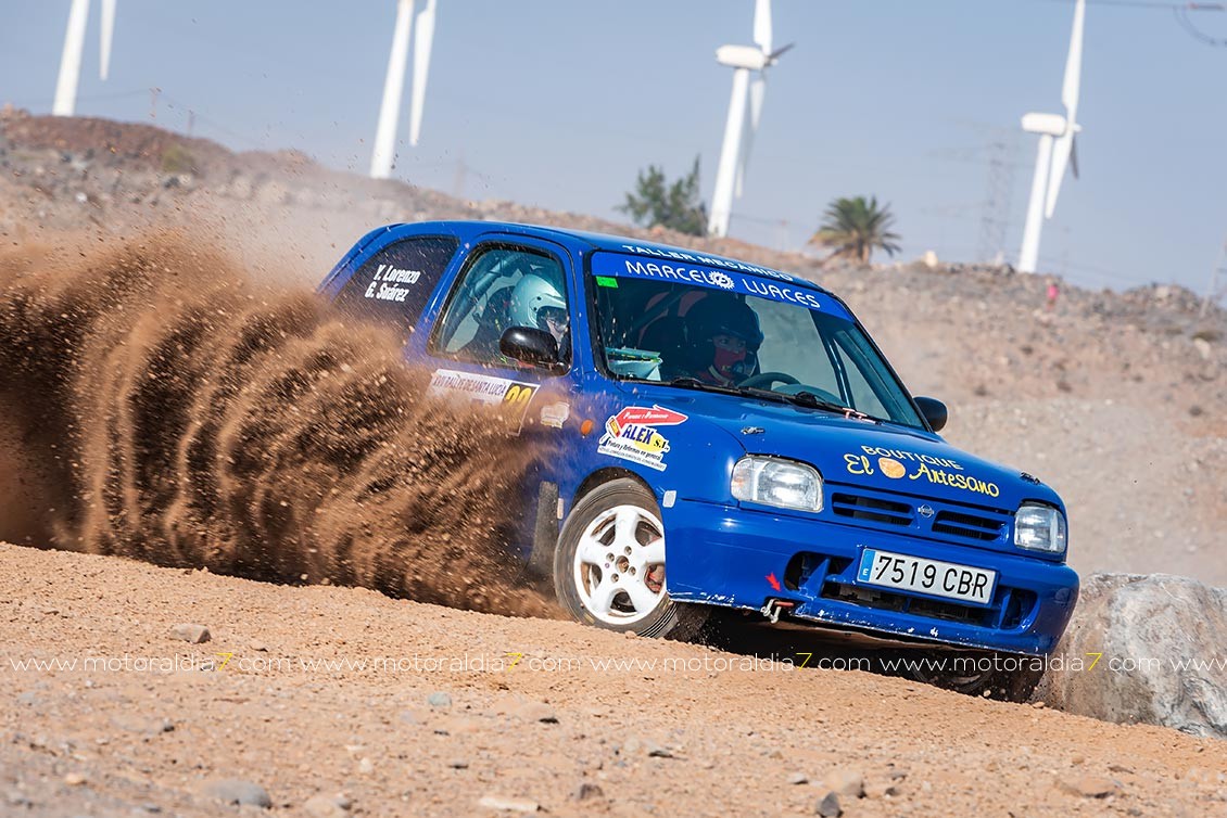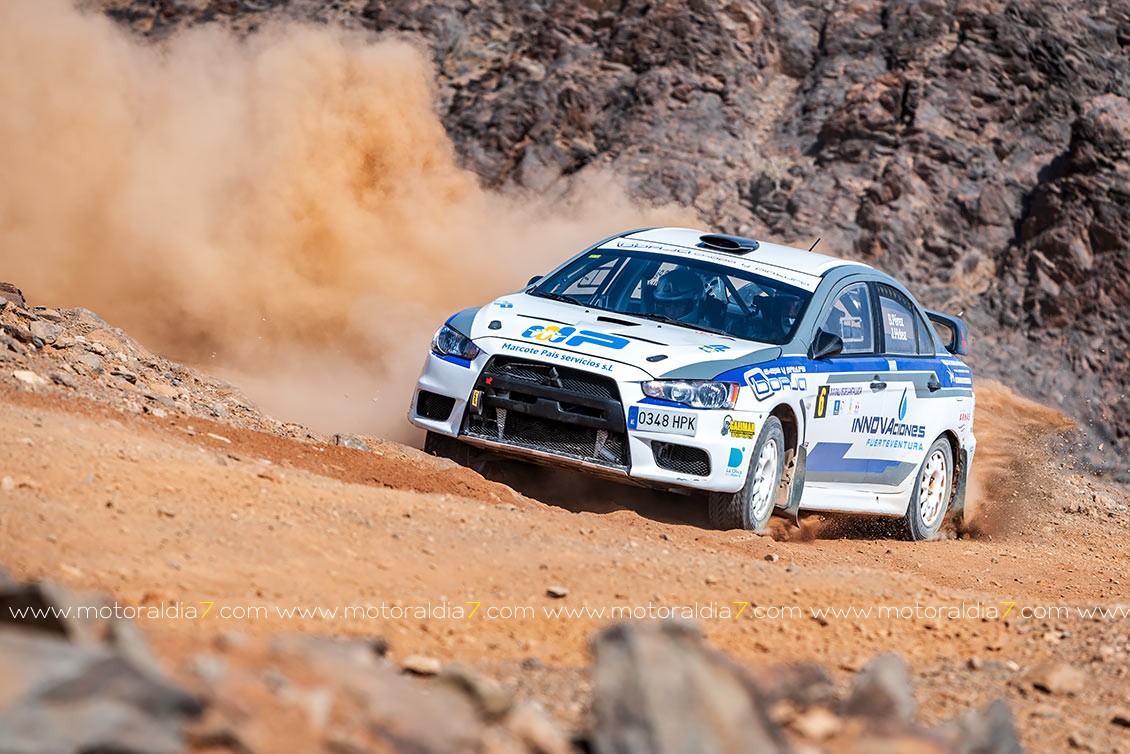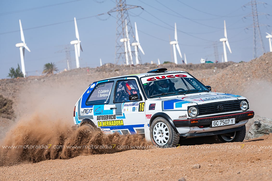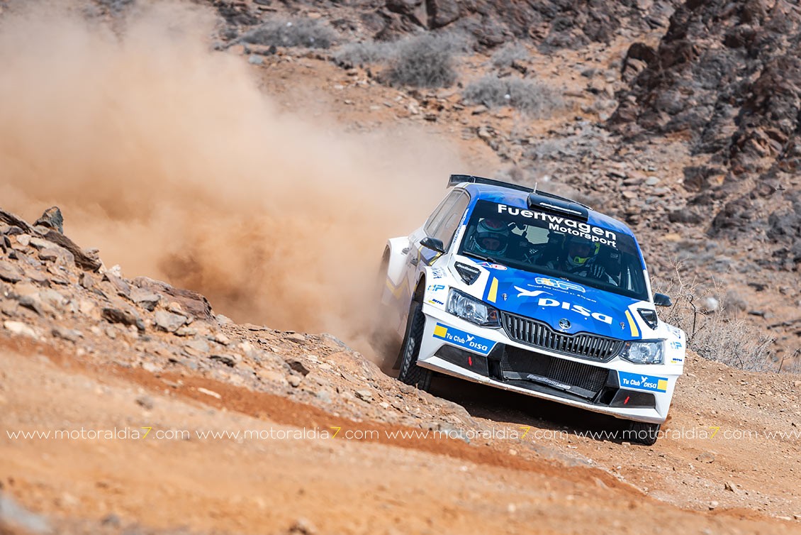 Los primeros líderes del rally fueron Juan Carlos Quintana-Yeray Mujica, que desde el primer tramo imprimieron un ritmo alto, aunque ya el piloto se quejaba de unos extraños en el motor de su Mitsubishi Lancer Evo X. Un problema que fue en aumento y debían retirarse antes de la salida del TC4, tramo donde tomaban el liderato Jesús Tacoronte-Mariola Sáez con su Evo IX, que gracias a su scratch en dicha especial de Juan Grande-Bahía Feliz, pasaban del tercer al primer puesto en la general en ese momento con 7,8 segundos de ventaja sobre Gustavo Sosa-Ariday Bonilla, que venían conservando ganas de correr para preservar la mecánica de su Skoda Fabia R5, mientras Borja Pérez-Jonathan Hernández tomaban el tercer lugar del podio con otro Evo X, pero ya a 42 segundos del nuevo líder.