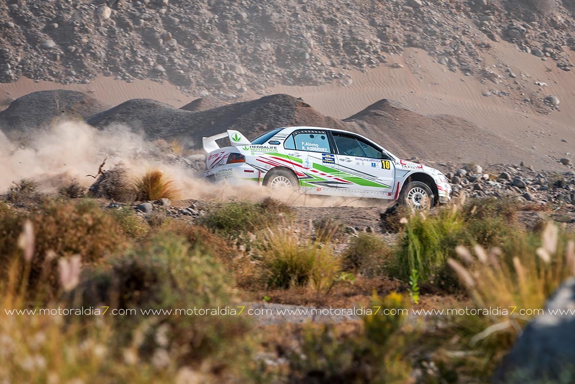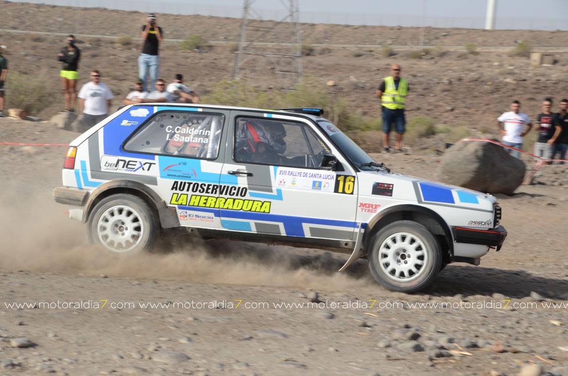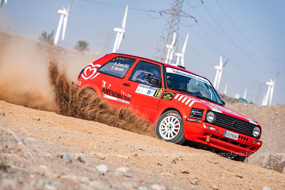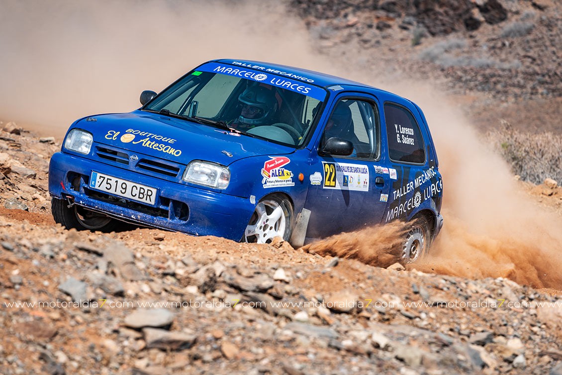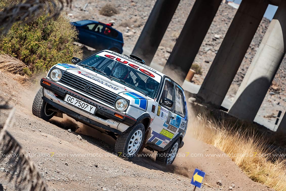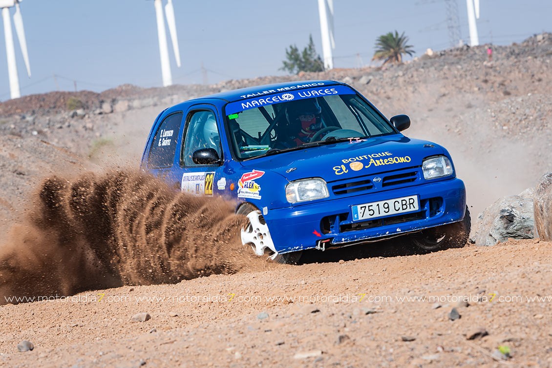 Los primeros líderes del rally fueron Juan Carlos Quintana-Yeray Mujica, que desde el primer tramo imprimieron un ritmo alto, aunque ya el piloto se quejaba de unos extraños en el motor de su Mitsubishi Lancer Evo X. Un problema que fue en aumento y debían retirarse antes de la salida del TC4, tramo donde tomaban el liderato Jesús Tacoronte-Mariola Sáez con su Evo IX, que gracias a su scratch en dicha especial de Juan Grande-Bahía Feliz, pasaban del tercer al primer puesto en la general en ese momento con 7,8 segundos de ventaja sobre Gustavo Sosa-Ariday Bonilla, que venían conservando ganas de correr para preservar la mecánica de su Skoda Fabia R5, mientras Borja Pérez-Jonathan Hernández tomaban el tercer lugar del podio con otro Evo X, pero ya a 42 segundos del nuevo líder.
