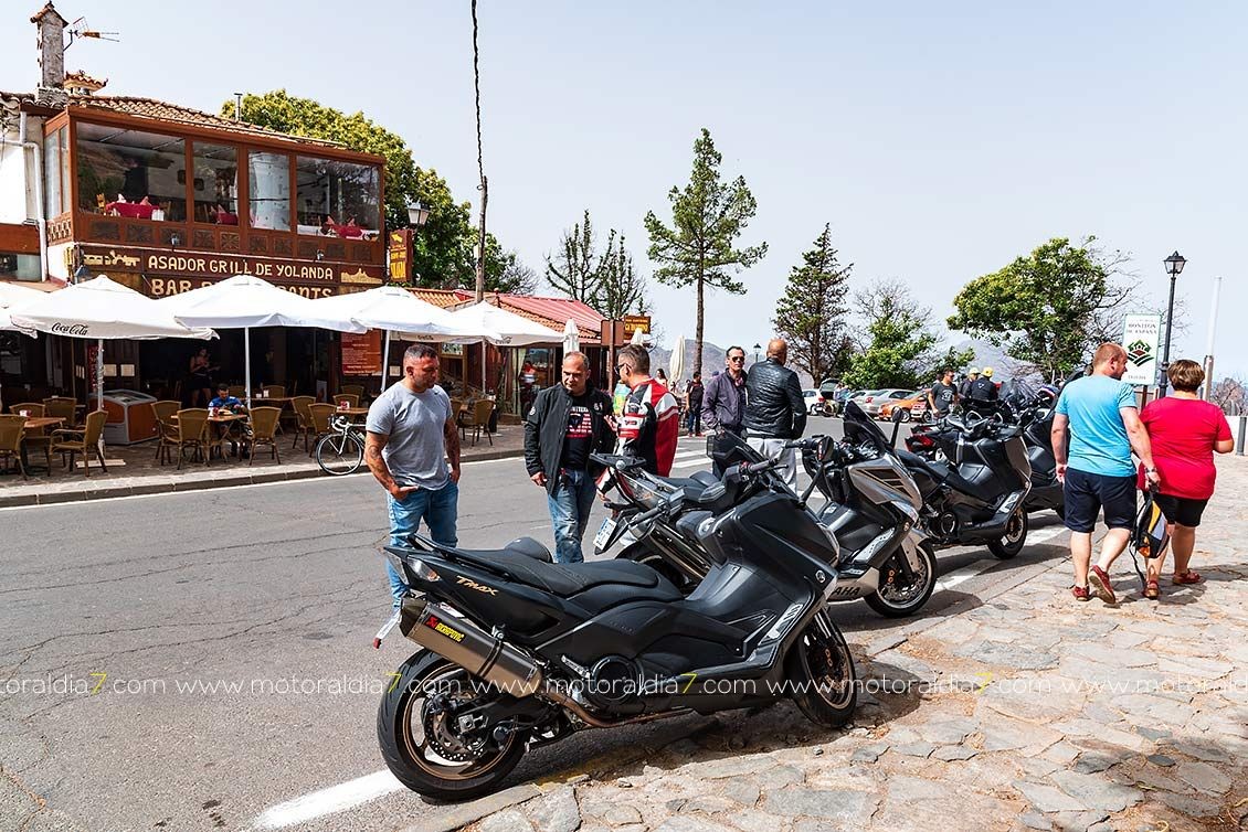 El recorrido de la ruta comenzaba con destino a Arucas, para subir por los Castillos, Los Chorros, Zumacal, Teror, Madre el agua, Ariñez y Cruz de Tejeda, donde se haría la primera parada para reponer y evacuar líquidos. Como es norma habitual en este punto se daban cita infinidad de moteros de todas las marcas, y los saludos entre todos es algo habitual e ineludible. Otra de las ventajas de conducir una moto....la cantidad de “amigos” que puedes hacer.