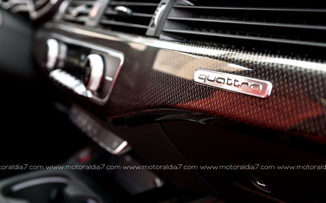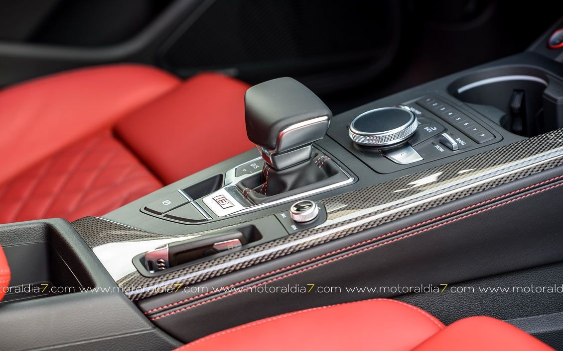 El habitáculo del Audi S5 también refleja también deportividad y aunque no se renuncia a su imagen elegante, lujosa y exclusiva, sí se puede apreciar ese toque 'sport' combinado a su vez con una mayor sensación de espacio. Además de las placas específicas del S5 en los umbrales de las puertas, añadimos detalles como el volante y el pomo de la palanca de cambio de diseño exclusivo, así como en otros detalles puntuales y terminaciones en fibra de carbono.