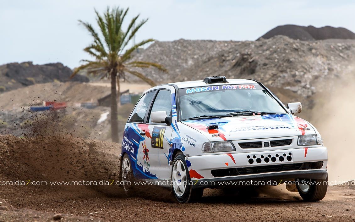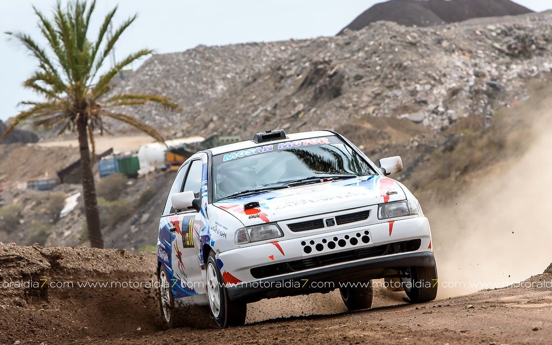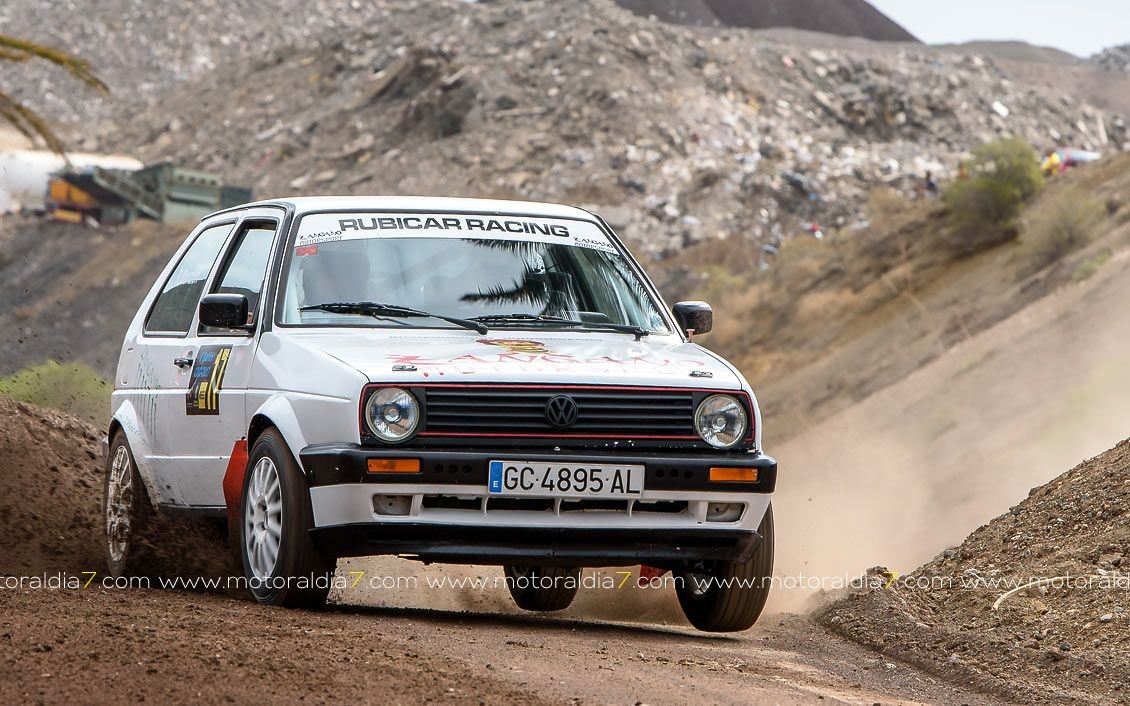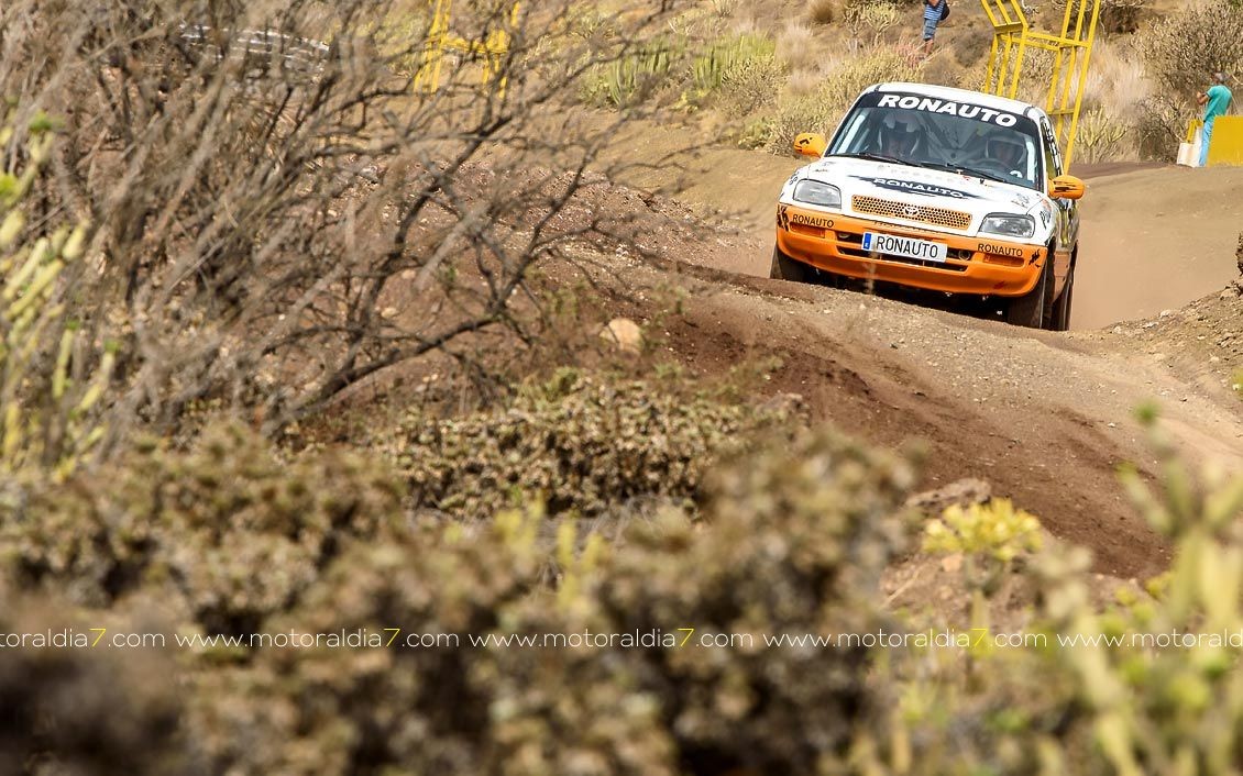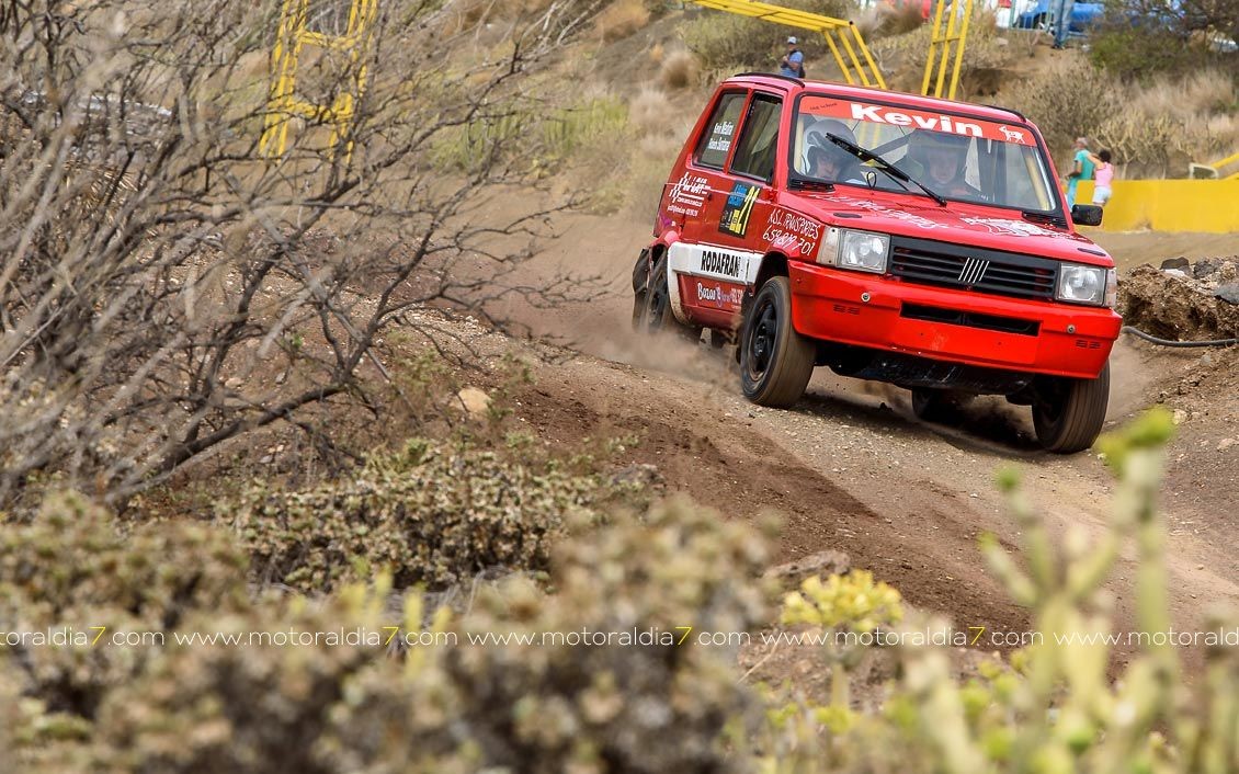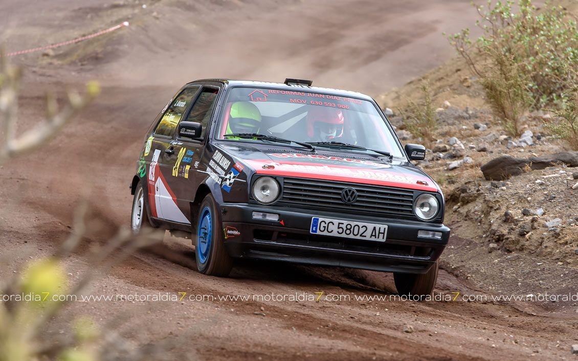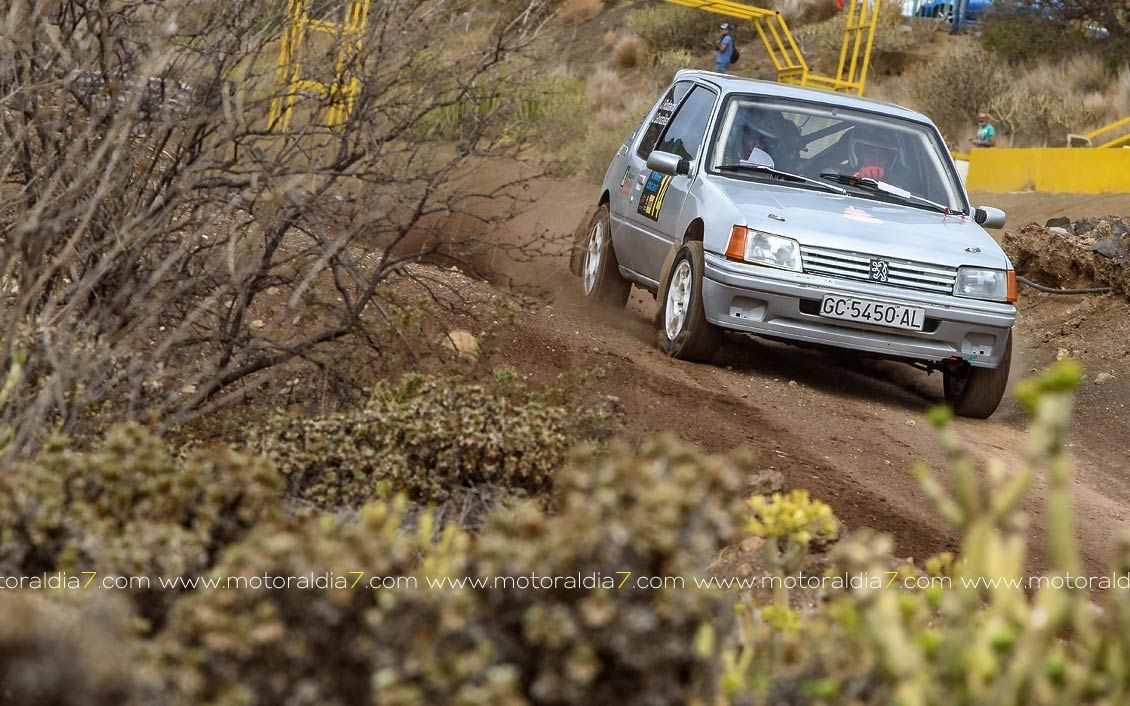 Estrenando el trazado de la CDIC, el joven lanzaroteño Raúl Hernández, con Rogelio Peñate a la derecha, realizaba una prueba de menos a más, mejorando sus tiempos en cada pasada, lo que les valía ser los quintos de la general en el que era su primera competición en tierra en Canarias.