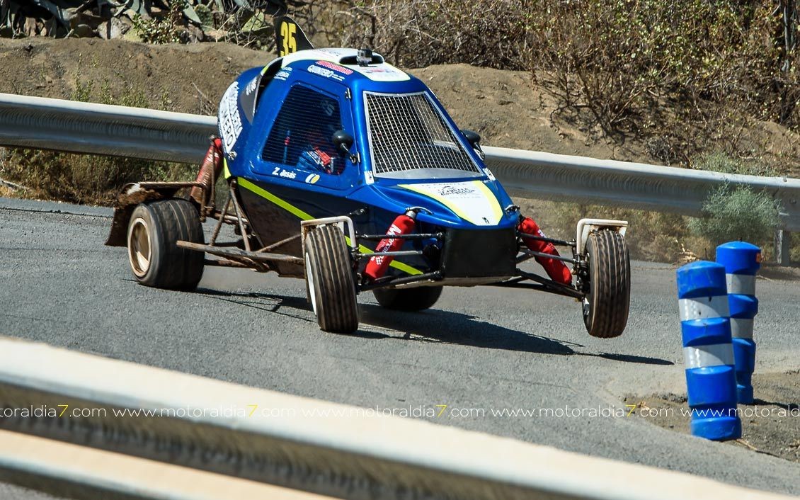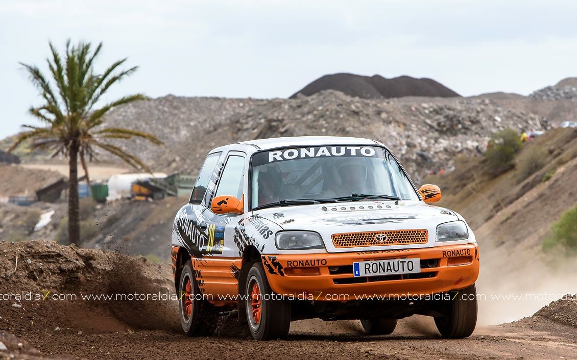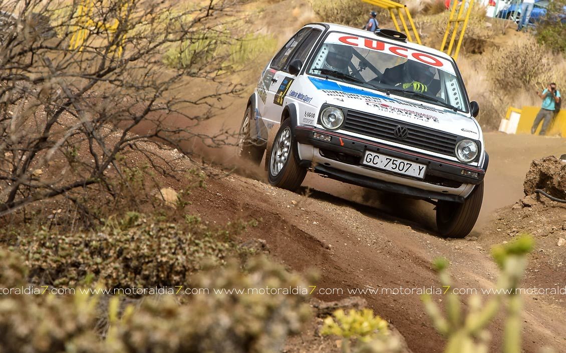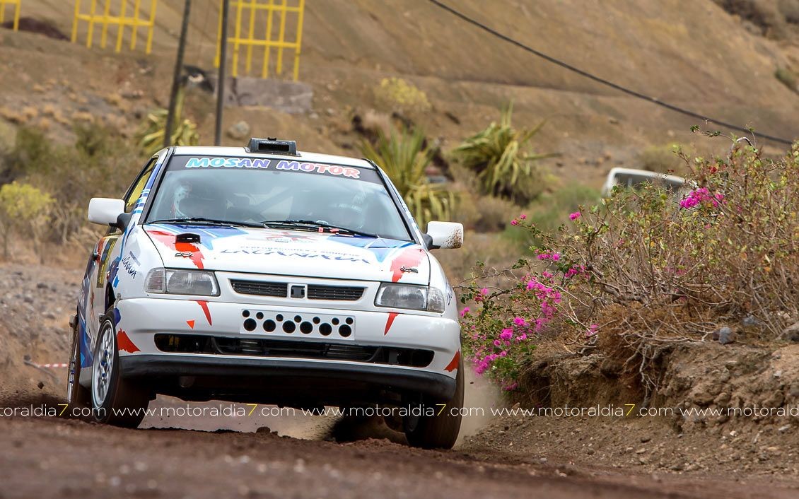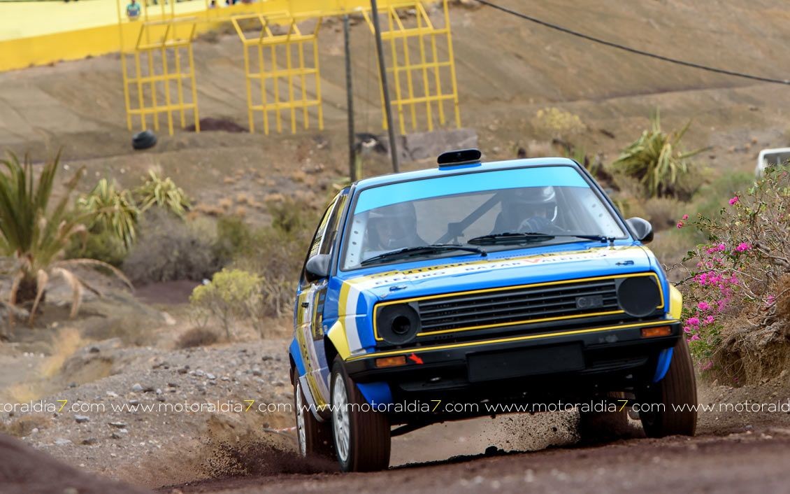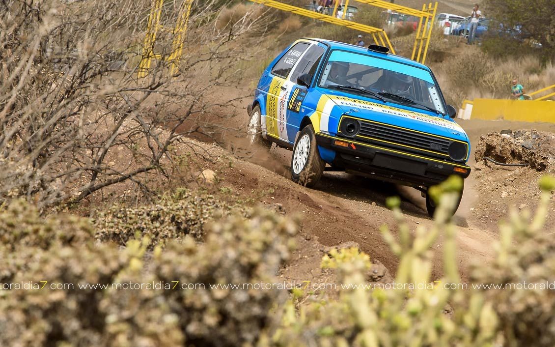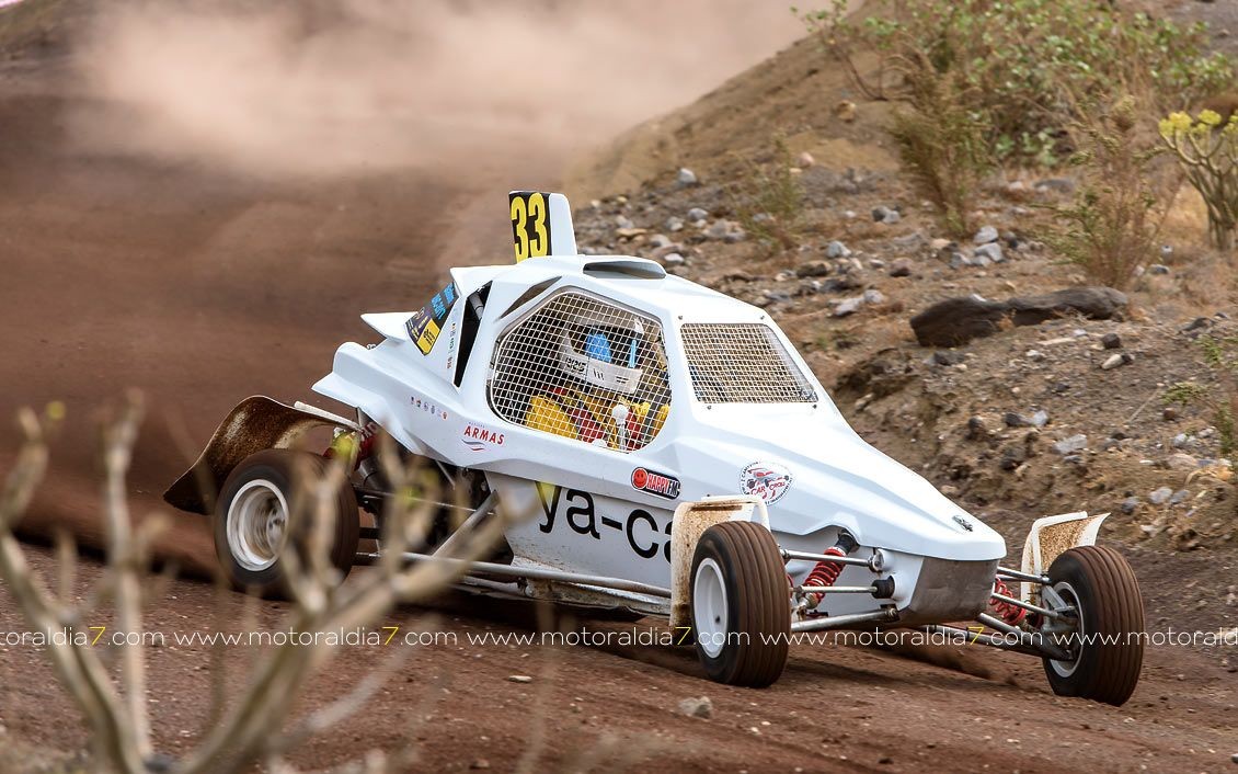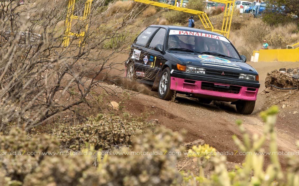 Estrenando el trazado de la CDIC, el joven lanzaroteño Raúl Hernández, con Rogelio Peñate a la derecha, realizaba una prueba de menos a más, mejorando sus tiempos en cada pasada, lo que les valía ser los quintos de la general en el que era su primera competición en tierra en Canarias.