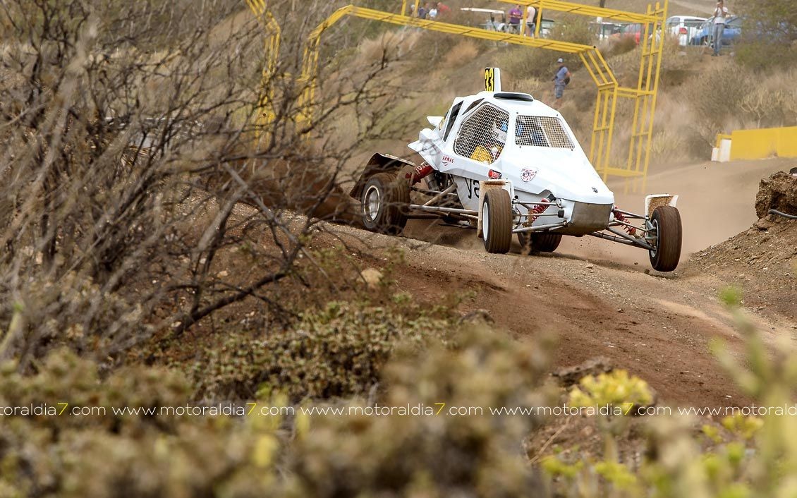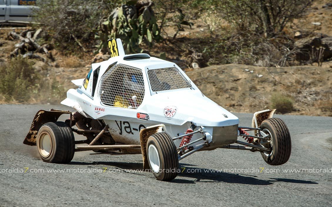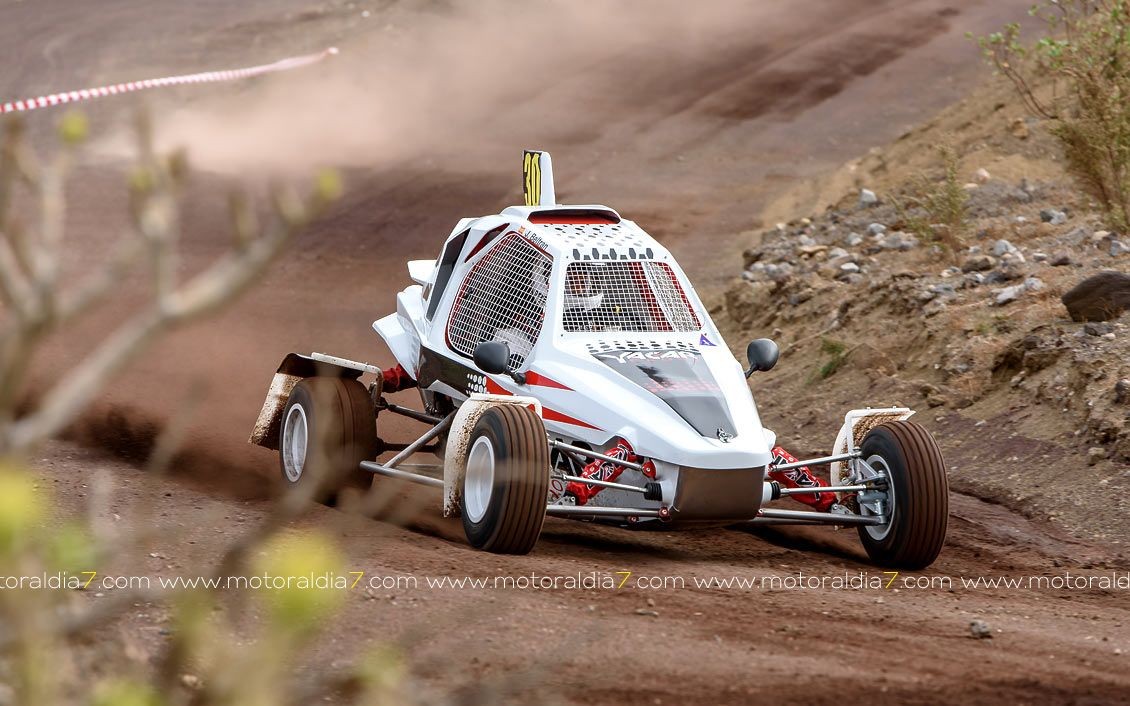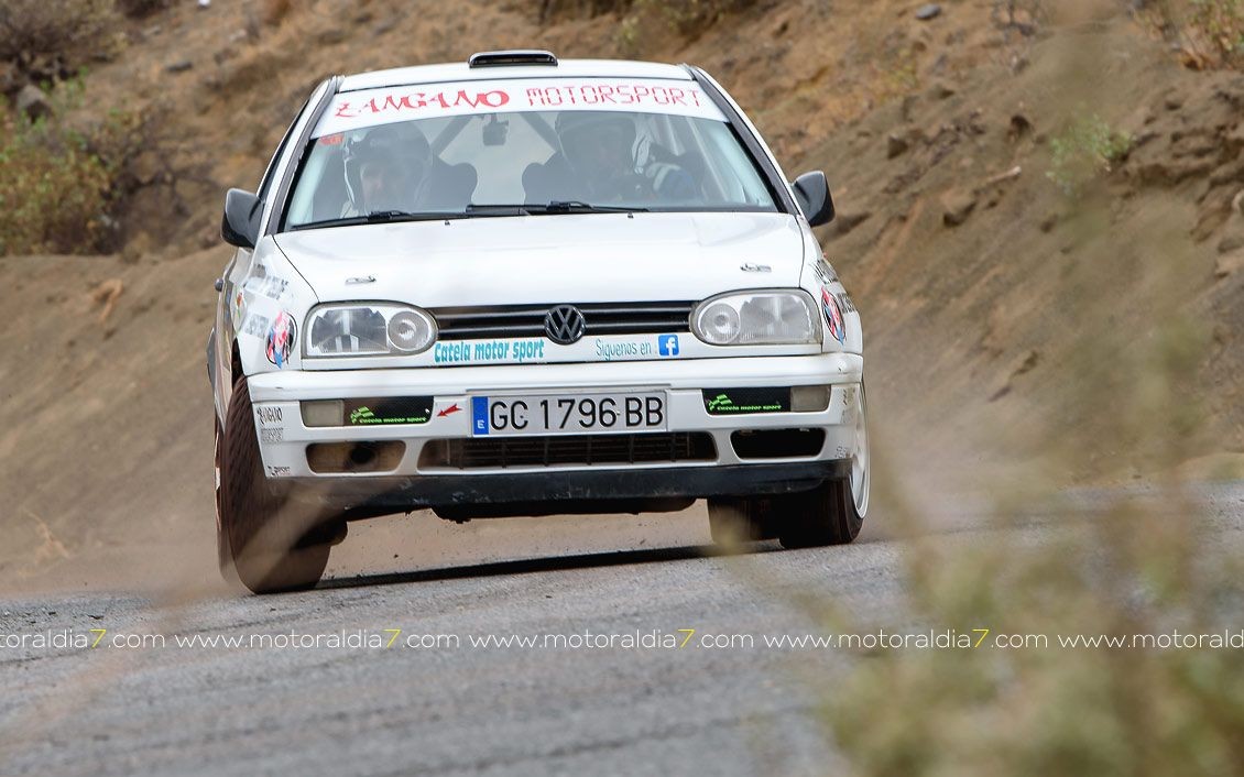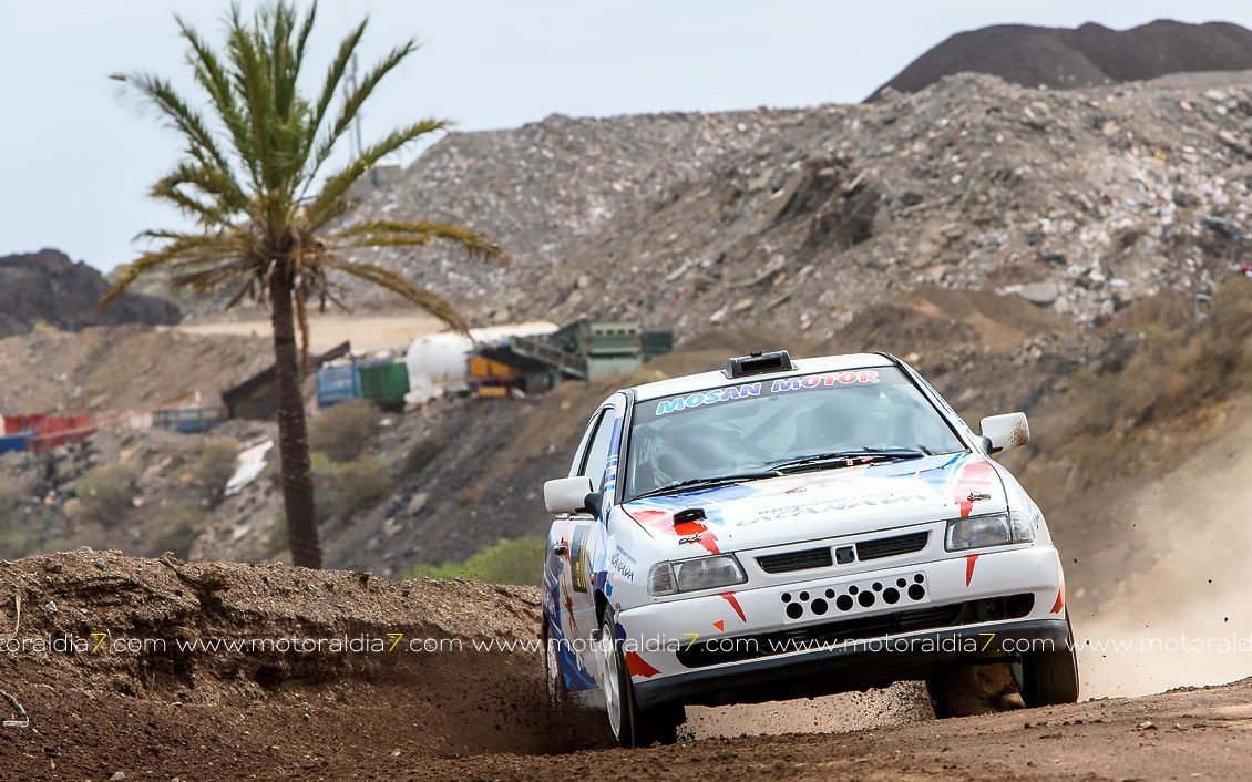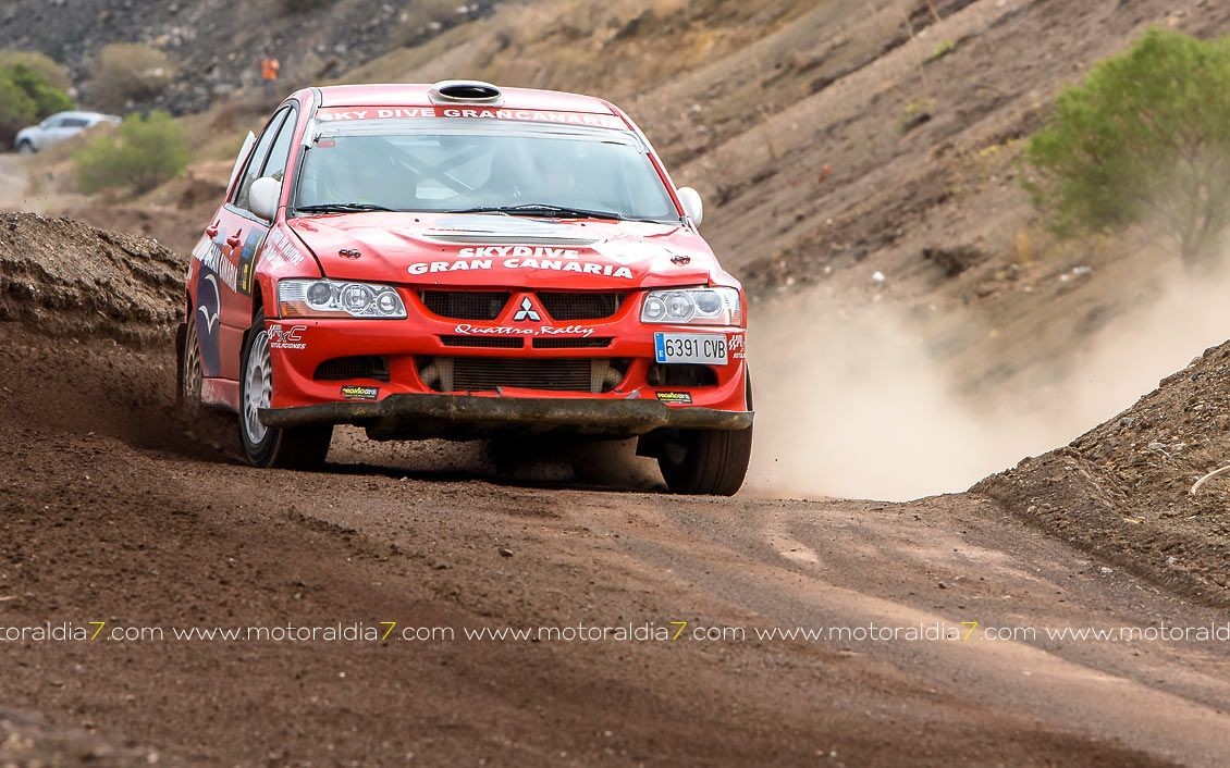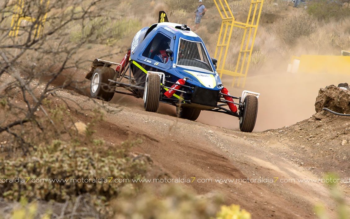 Estrenando el trazado de la CDIC, el joven lanzaroteño Raúl Hernández, con Rogelio Peñate a la derecha, realizaba una prueba de menos a más, mejorando sus tiempos en cada pasada, lo que les valía ser los quintos de la general en el que era su primera competición en tierra en Canarias.